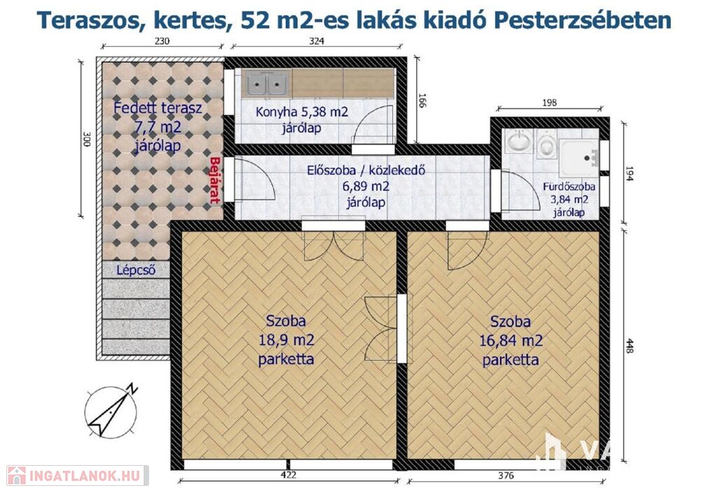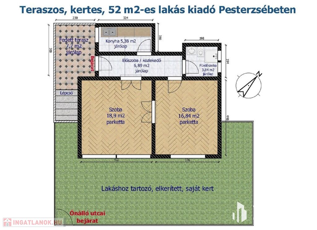 TERASZOS, KERTES, 52 M2-ES BERENDEZETT ÉS GÉPESÍTETT LAKÁS KIADÓ PESTERZSÉBETEN