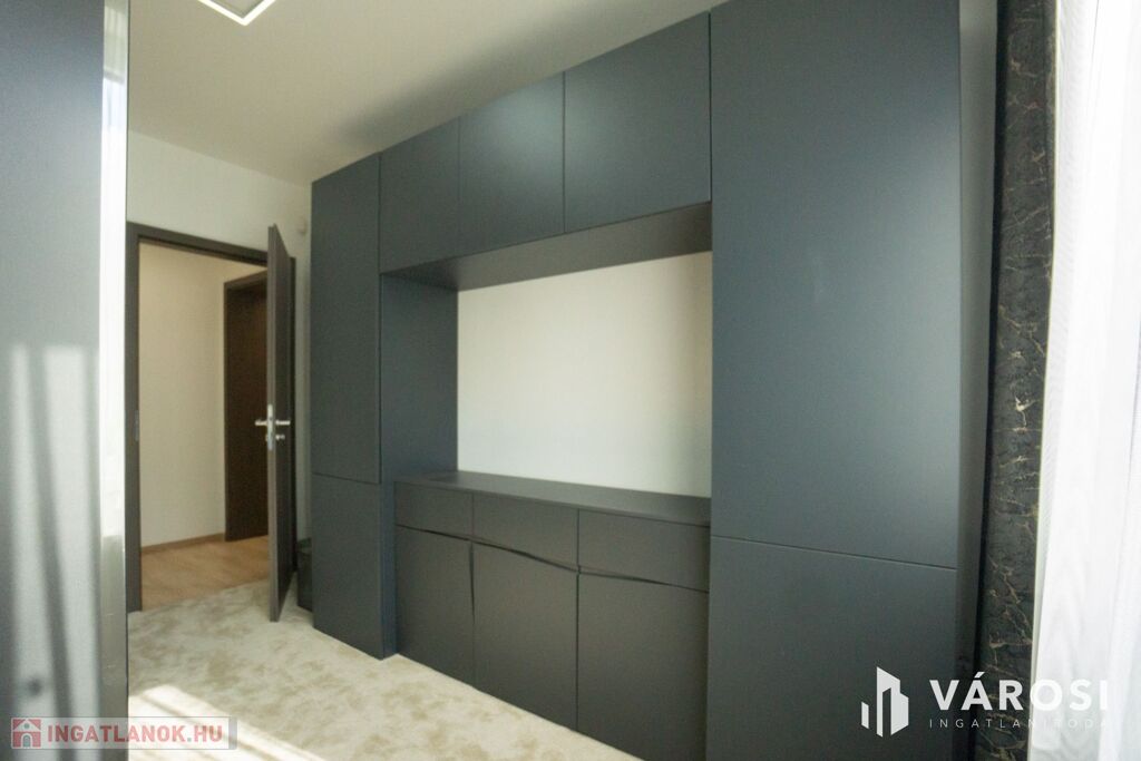 Győr Belvárosában kiadó egy 2020-ban épült hatszintes, liftes társasház, egyik negyedik emeleti, nappali+2 hálószoba+ gardrób szobás lakása.