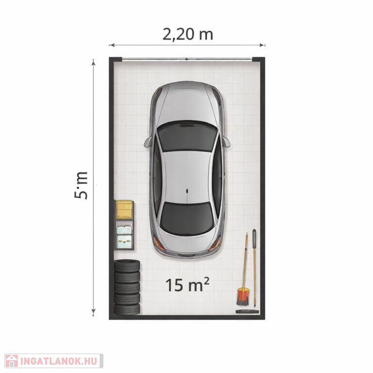 Az ingatlan 15 m² alapterületű, így tökéletes választás mind autó tárolására, mind kisebb tárolási igények kielégítésére.