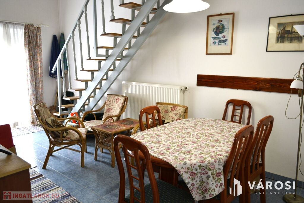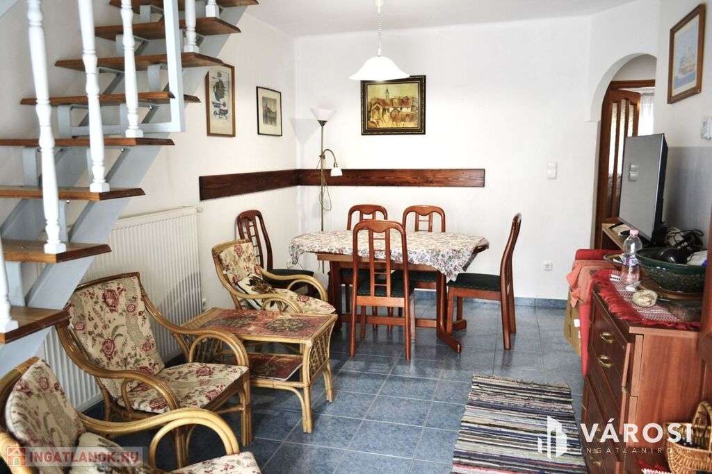 Eladásra kínálunk egy osztatlan közös ikerházat, használati megosztással, Balatonfüred csendes, zöldövezeti részén. Az épület egy közös fallal csatlakozik a másik házhoz. Átlagos állapotú, azonnal költözhető és teljesen berendezett, így ideális választás lehet mind lakóhelynek, mind nyaralónak. Lakó területe 80 m2 amely két szinten lett kialakítva. (alaprajz mellékelve)