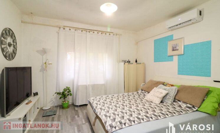 - 2 szoba (az előszobába nyitható egy új ajtó, amely lehetővé tenné a 2 különnyíló szoba kialakítását)