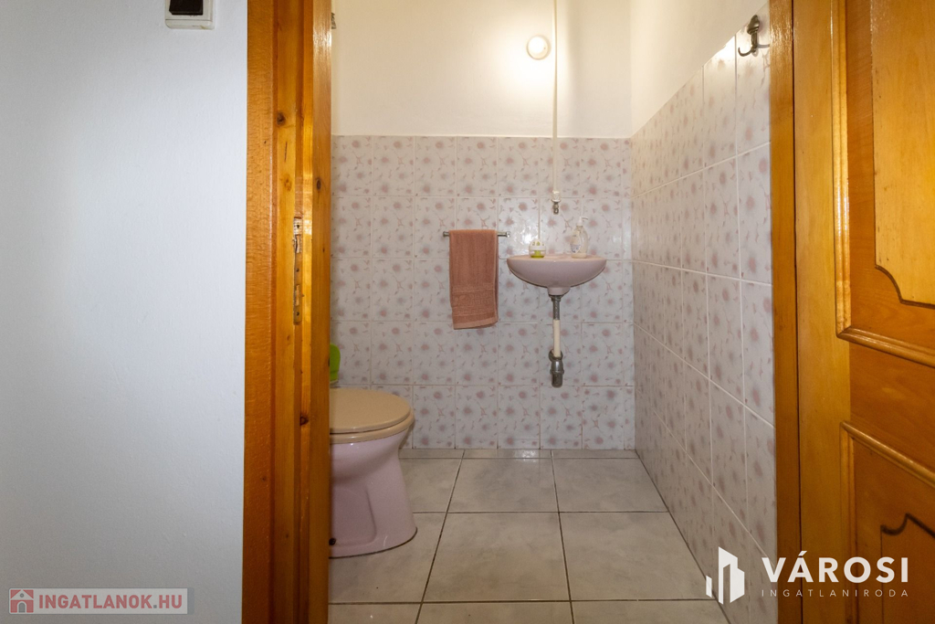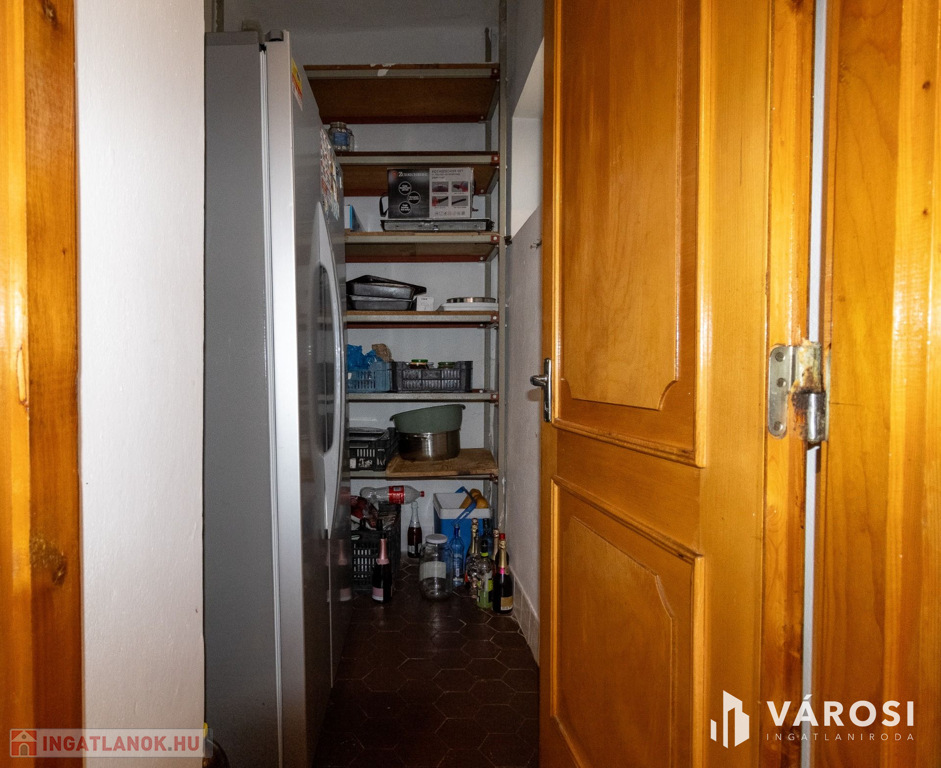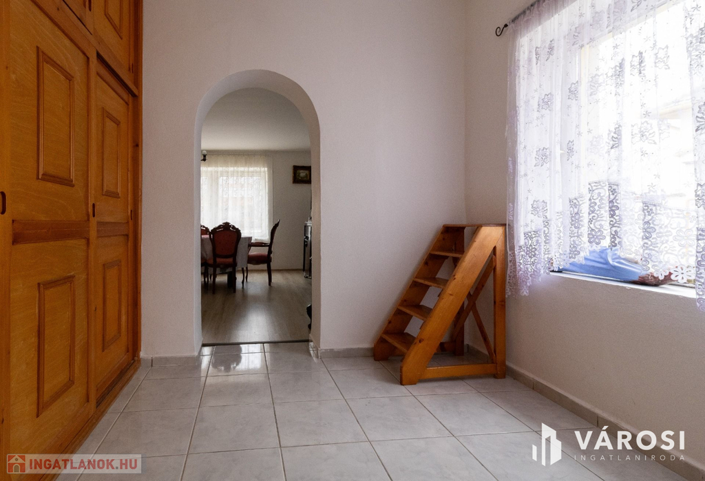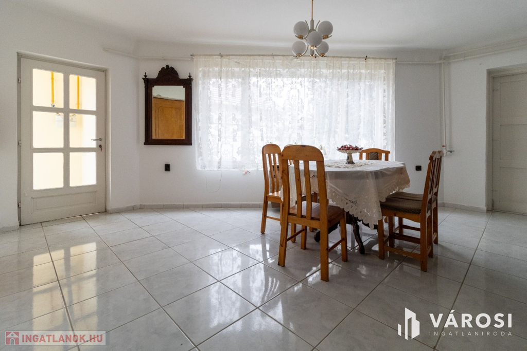 Az udvarról egy szélfogón keresztül jutunk be az étkező-nappaliba, innen nyílnak a további helyiségek: a konyha, egy szoba, a fürdő, a külön WC,. Innen juthatunk be a gardróbos előszobába, ahonnan pedig az utcafronti, egymásba nyíló szobákba.