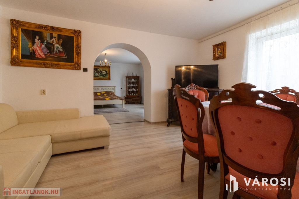A 70-es években épült, vegyes falazatú, jó szerkezeti állapotú házat polgári stílusban újították fel a tulajdonosok: kényelmes, világos, akár több generáció számára is élvezhető életteret hoztak létre.