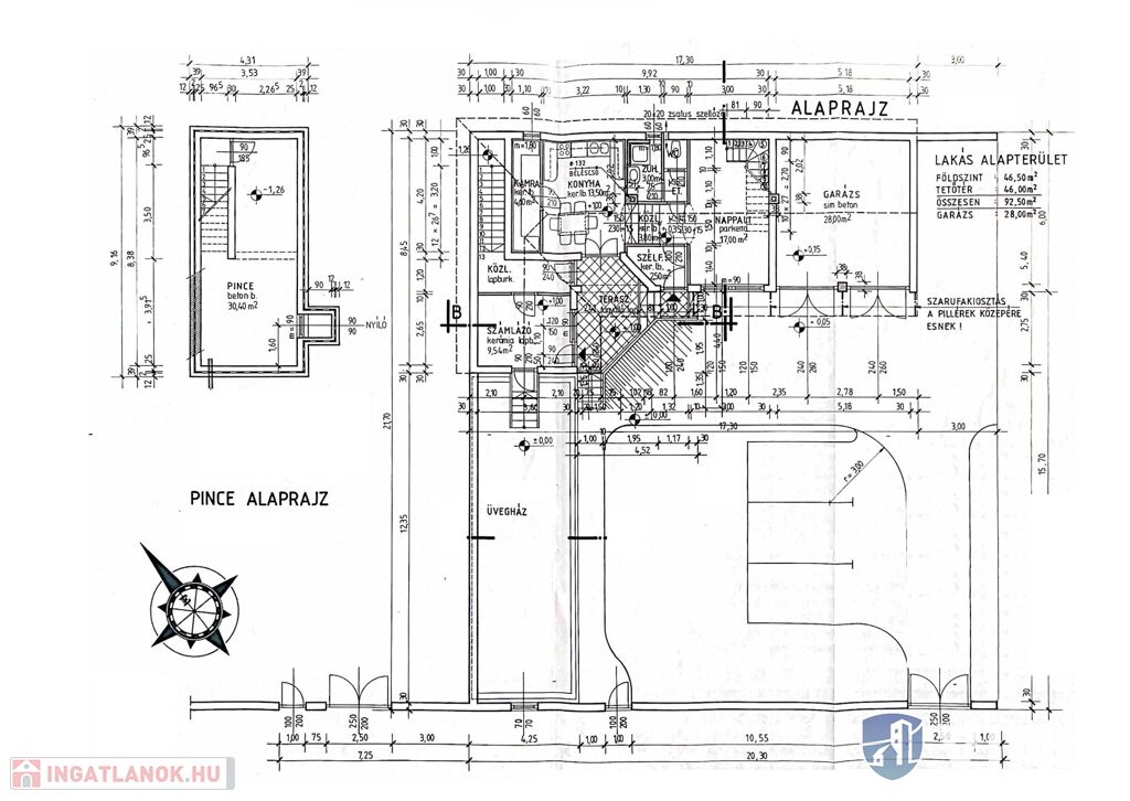 Az épület alatt egy 30 m2-es, száraz, kifogástalan állapotú pince található, melynek egy részében hőtőkamra került kialakításra.