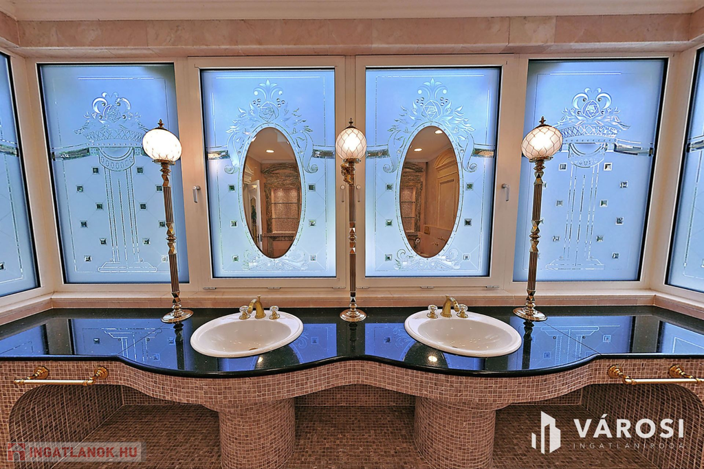 Az intarziás parketták, a márvány burkolatok, a kazettás mennyezetek, a tömörfa, koronás ajtók és fafaragásokkal díszített beépített bútorok, az ólomüveg betétek, az exkluzív tapéták, az egyedi csillárok mind-mind a legmagasabb luxus minőségében készültek.