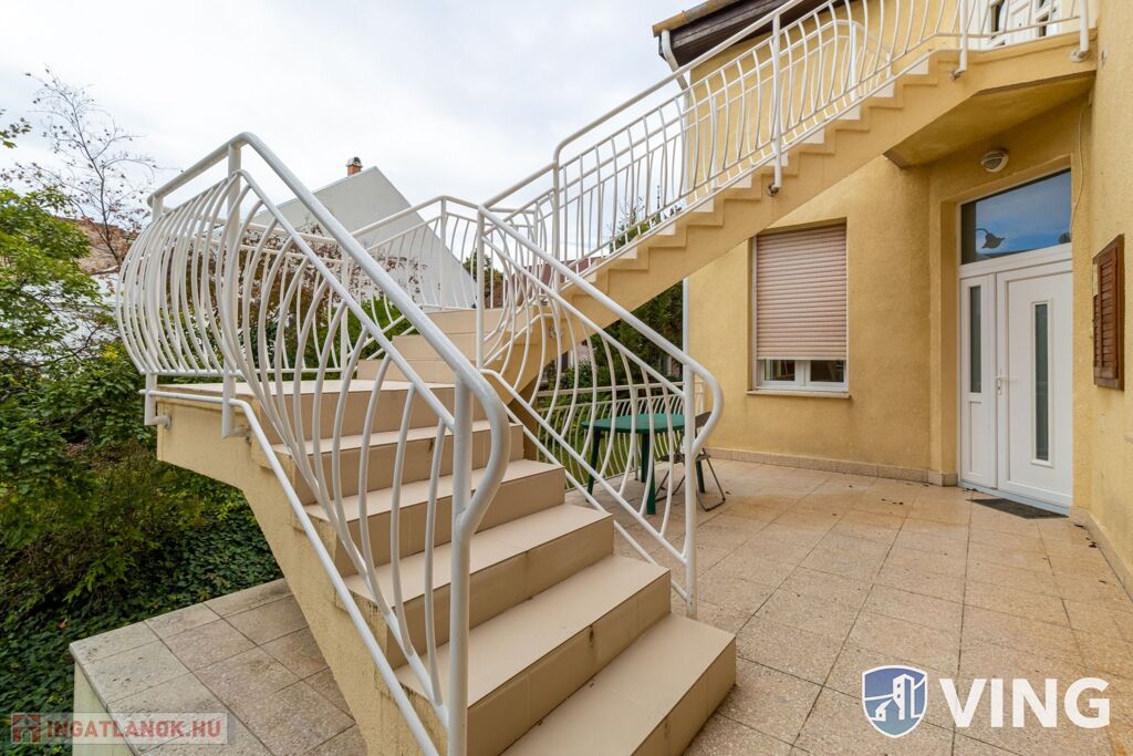 - A ház kert felöli teraszáról felvezető lépcsőről nyíló emeleten helyezkedik el.