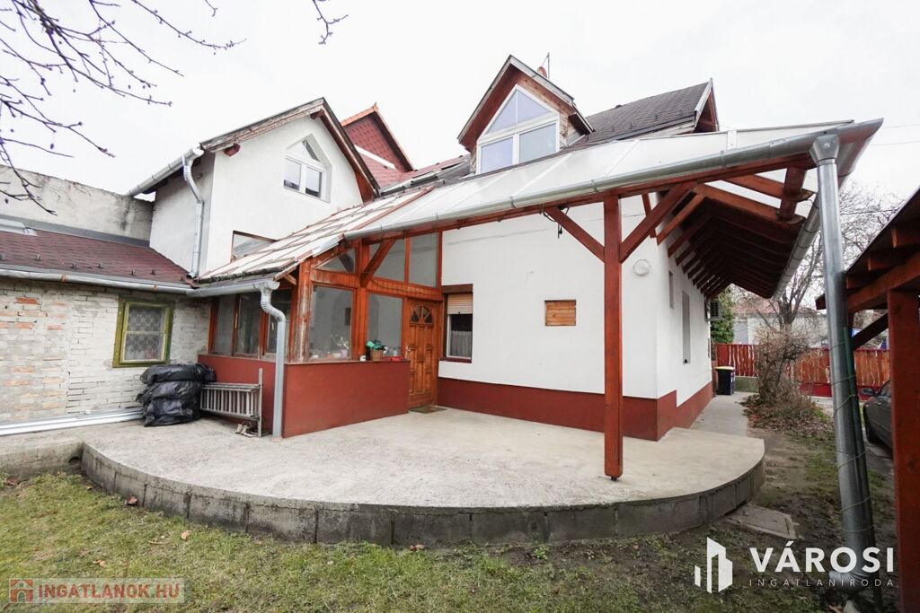 -160nm-es családi ház(2 konyha, nappali, 4 lakószoba, előszoba,2 fürdőszoba, különálló wc) mellett 50nm-es és 5nm-es melléképület és 4nm-es pince)