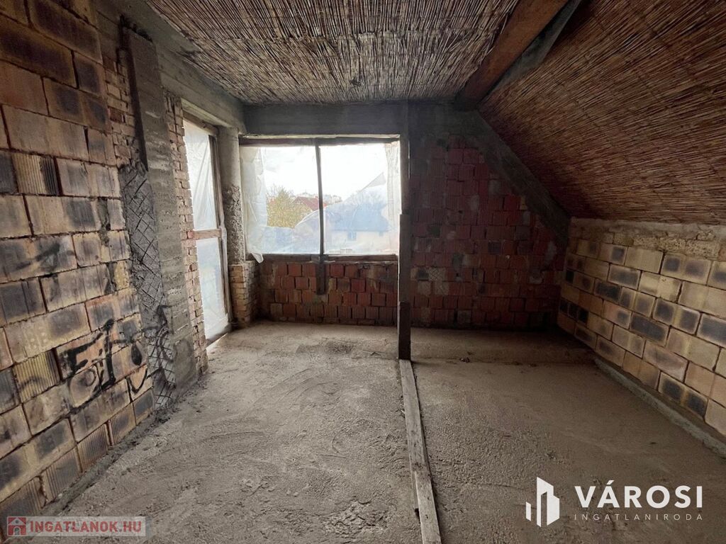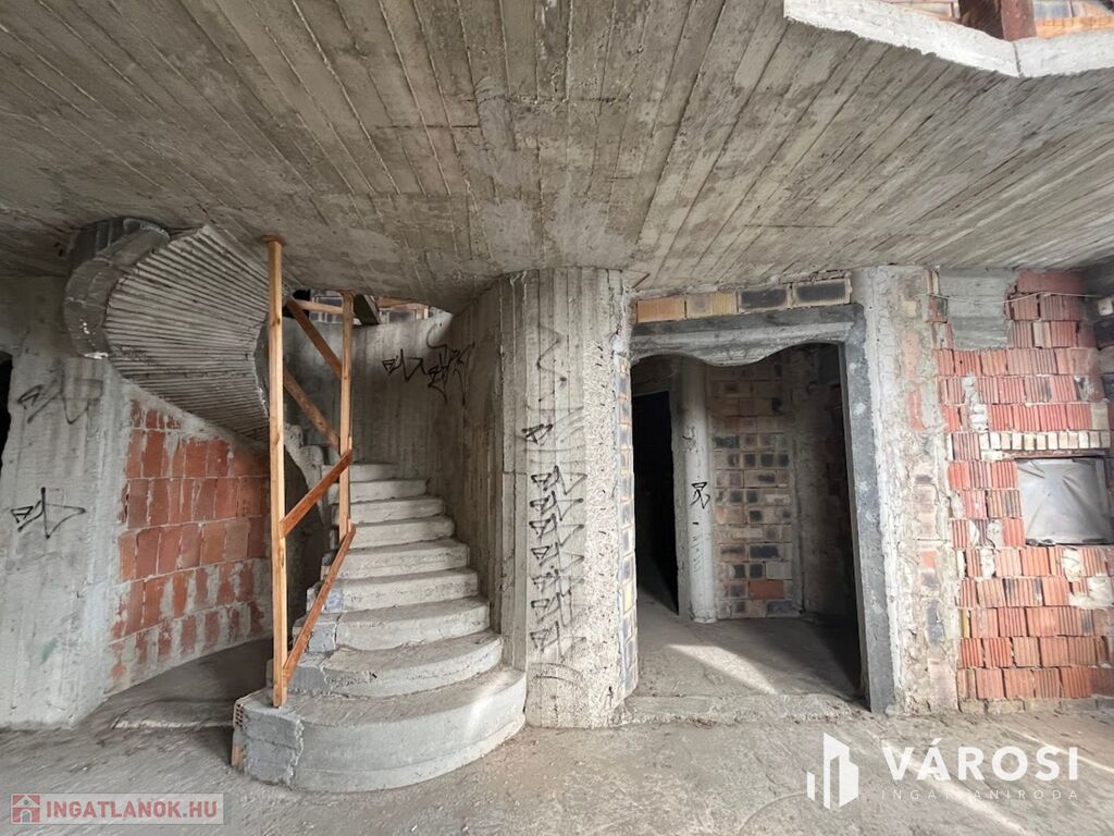 Debrecen szép kertvárosi környezetében, a Kincseshegy városrészen, 360 nm-es szerkezetkész 4 szoba nappalis 3 szintes ingatlan eladó! A ház teljesen alápincézett, ahol 7 kisebb nagyobb helyiség található. A földszinti részen, egy közel 60 nm-es hatalmas nappali étkező van, mellette 18 nm-es konyha kamrával, fürdőszoba külön wc-vel, és egy 15 nm-es szoba található. A felső szinten 3 nagyméretű hálószoba van, mindegyik saját gardróbbal, 2 fürdőszoba, és egy szép világos nappali rész van. A ház befejezéséhez, teljesen friss jogerős építési engedélyek vannak, így azonnal elkezdhető a befejezés, és egy álomszép luxus otthont lehet belőle varázsolni. A telken található még egy 80 nm-es dupla garázs, melynek az egyik részében, egy egyszobás garzon lakrész is rendelkezésre áll. Érdemes megnézni, rengeteg fantázia van az ingatlanban!!!