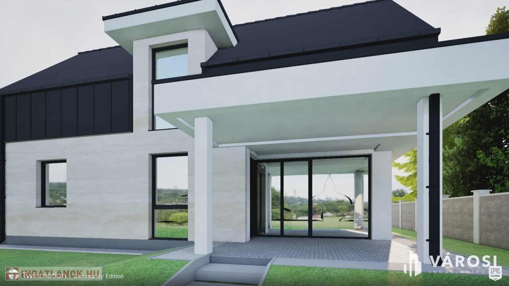 -elektromos kapuval ellátott garázs kényelmes bejutást biztosít az autóval érkezőknek,