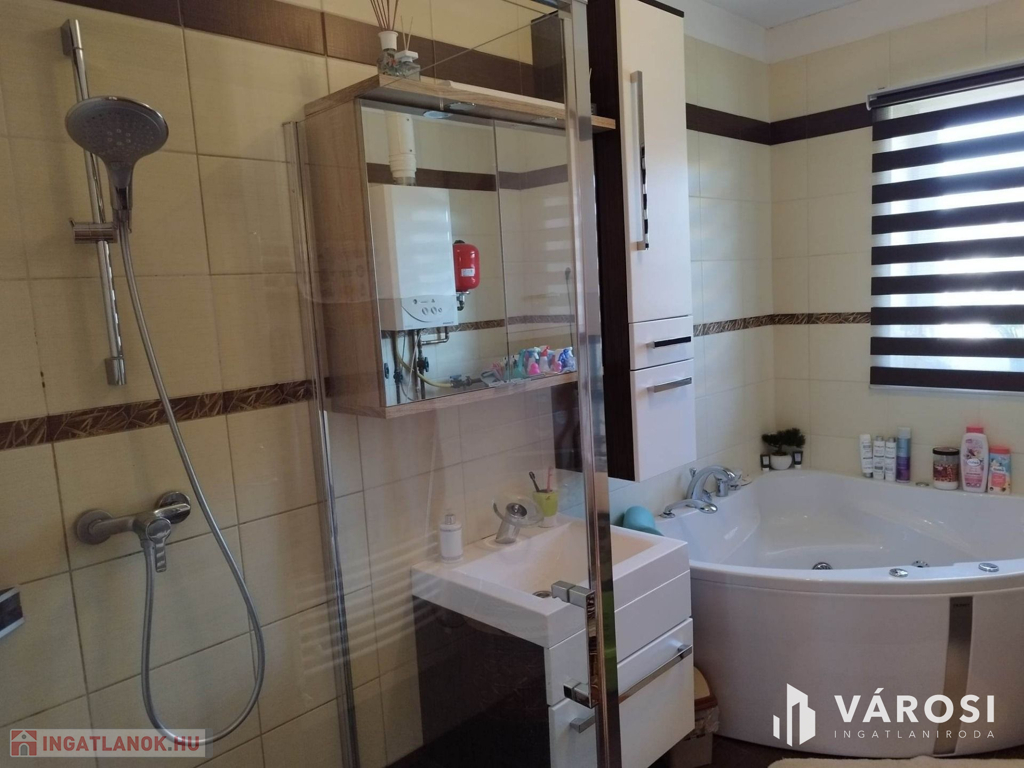 Debrecen kiemelt zöldövezetében a Liget lakóparkban, 125 nm-es 3 szoba nappalis szélső sorház 300 nm telekkel eladó. Az ingatlan csendes igényes szép környezetben helyezkedik el, és mivel nem közbülső sorház így a telek is nagyon jól élhető, rendezett parkosított, szép nagy teraszos, és a ház is 3 oldalról körbe járható. A ház elosztási kiváló, a földszinten található a nappali étkező konyha, egy wc mosdó, és természetesen a garázs. A felső szinten pedig 3 hálószoba, fürdőszoba wc, és egy szép nagy terasz. Ha egy igazán exkluzív helyen keres egy igazán jól megtervezett élhető házat akkor hívjon és nézze meg!