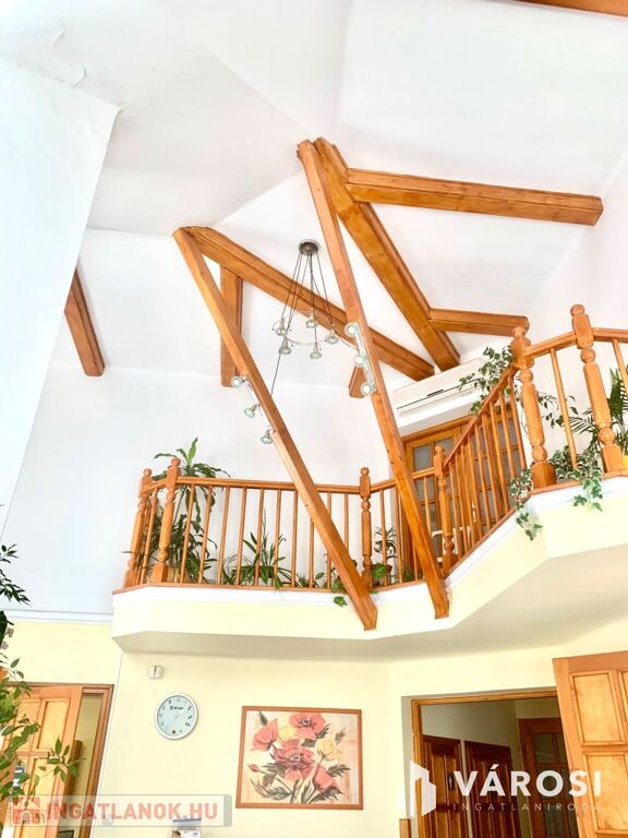Ez a kiváló állapotú, 270 m² lakótérrel rendelkező ingatlan tökéletes választás azok számára, akik szeretnék élvezni a modern élet kényelmét egy csendes, zöld övezetben, mindössze karnyújtásnyira a belvárostól. A ház egy 573 m²-es, parkosított telken található, amely automata öntözőrendszerrel és kertvilágítással biztosítja az udvar gondozottságát.