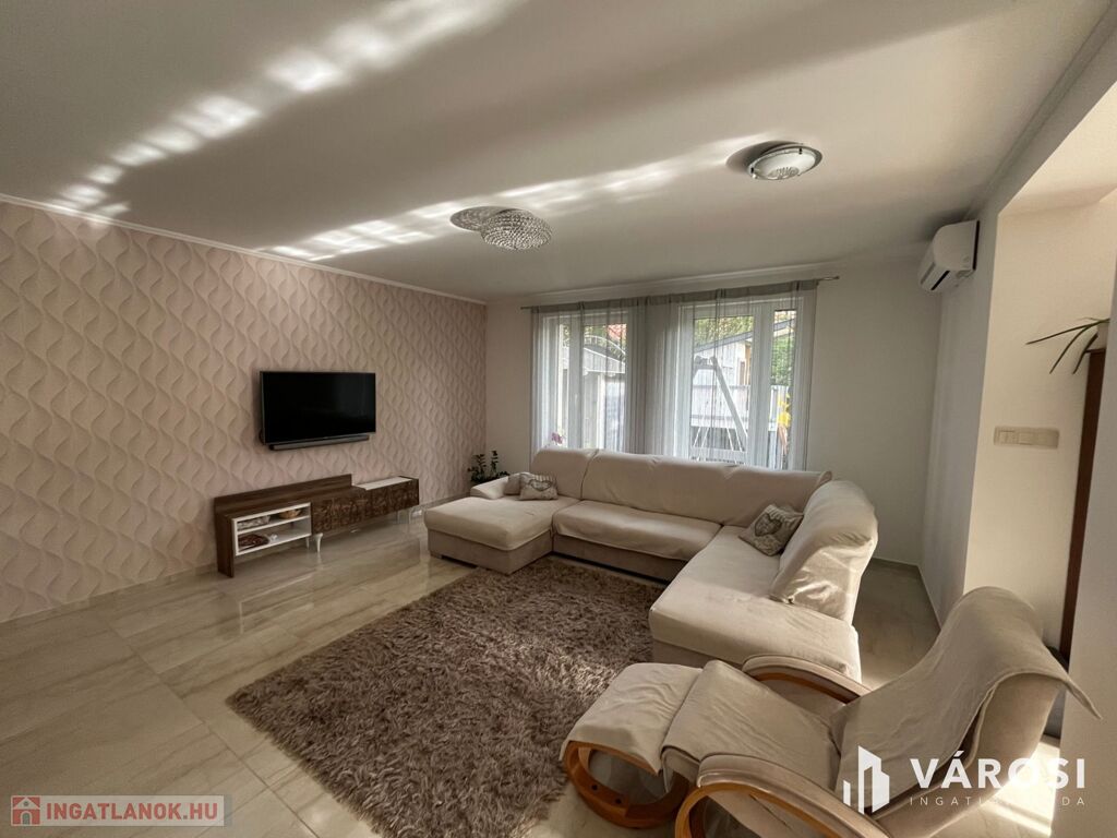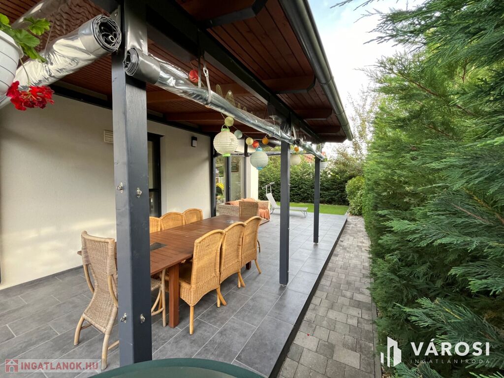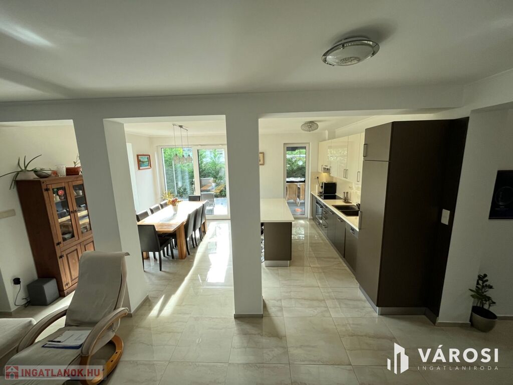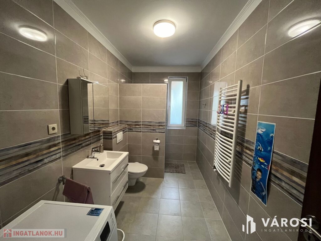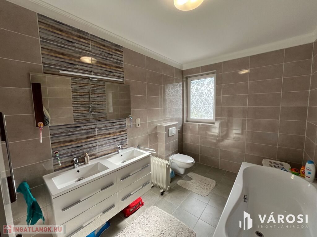 Debrecen Vámospércsi út közelében a Balla lakóparkban, gyönyörű madárcsicsergős zöldövezetben, 180 nm-es 4 szoba nappalis újszerű igényes ház eladó. Az ingatlanhoz dupla garázs tartozik, és szépen parkosított 470 nm-es kert van hozzá, ahol helyet kapott egy nagy fedett terasz, és a hátsó kertben egy gyereksarok játszóházzal. A ház alsó szintjén helyezkedik el a nappali, tágas étkező konyha amelyből közvetlen terasz kapcsolat van, egy szoba és egy zuhanyzós fürdőszoba. A felső szintre érkezve a közlekedőből három hálószoba nyílik és egy kádas fürdőszoba, plusz egy mosókonyha wc-vel. Az ingatlan valóban gyönyörű erdőkkel tarkított csendes zöldövezetben található, ahol tényleg megvan az emberben az igazi otthon érzés. Nézze meg próbálja ki, nem fog csalódni!