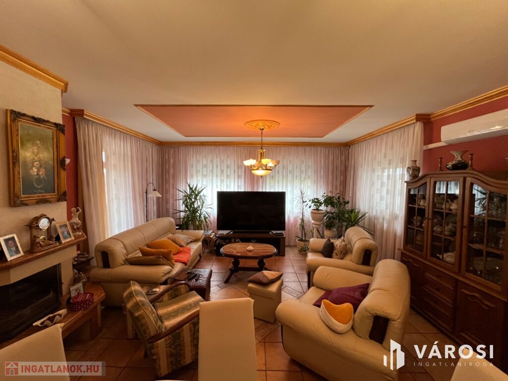 Debrecen Csendes madárdalos környezetében, 240 nm-es 4 szoba nappalis, 2 fürdőszobás, 2 konyhás, 2 teraszos, és természetesen 2 garázsos igényesen minőségi anyagokból megépített családi birtok, 3200 nm-es parkosított szép kerttel eladó. A házban található még egy nagy mosókonyha, és egy gardrób szoba is. A telken található egy nagy méretű filagória, egy kis faház, és egy épített tároló valamint egy baromfi ól. A hátsó kertben pedig egy kis fenyőerdő teszi varázslatossá a hely szépségét, és levegőjét. Az ingatlanon most került bevezetésre a három fázisú áram, és egy 10 KV-os napelemes rendszer is telepítésre került, így a ház nagyon energia takarékos! Ha egy igazán meghitt csendes családi otthonra vágyik, megtalálta! Nézze meg és beleszeret!