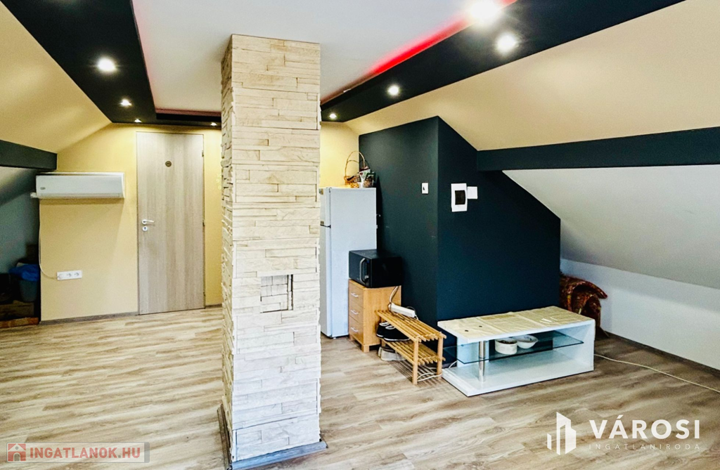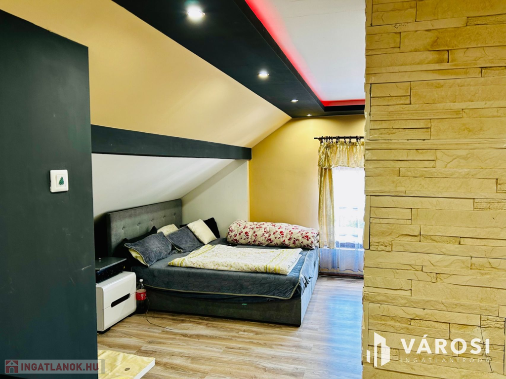 A tetőtér kialakításakor teljesen új gerendák, tetőlecek és szigetelés kaptak helyet. A tetőtérben egy fürdő+WC, és egy tágas szoba található, mely akár egy teljesen különálló lakrészt biztosíthat valaki számára.