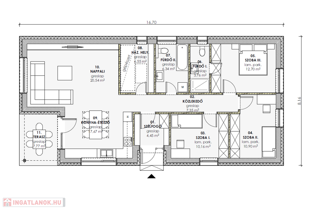  Nyílászárók: háromrétegű hőszigetelt üvegezés a kiváló hő- és hangszigetelésért.