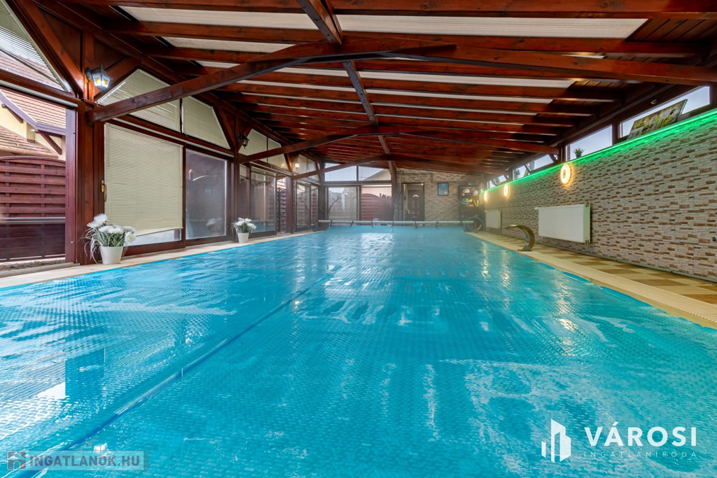 A fűtés modern gázkazánnal, padlófűtéssel és radiátorokkal működik, a medence mögötti különálló fürdőszobában öltöző és mosógép bekötési lehetőség is adott.