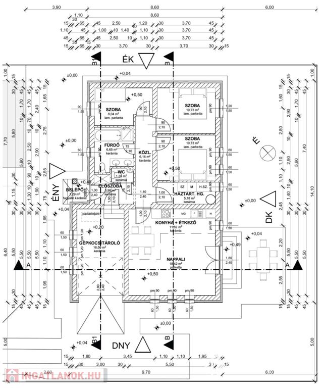 +16,50 garázs, amely a lakótérrel kapcsolódik az előszobán keresztül, elektromos kapun kényelmes biztonságos beállást biztosít.