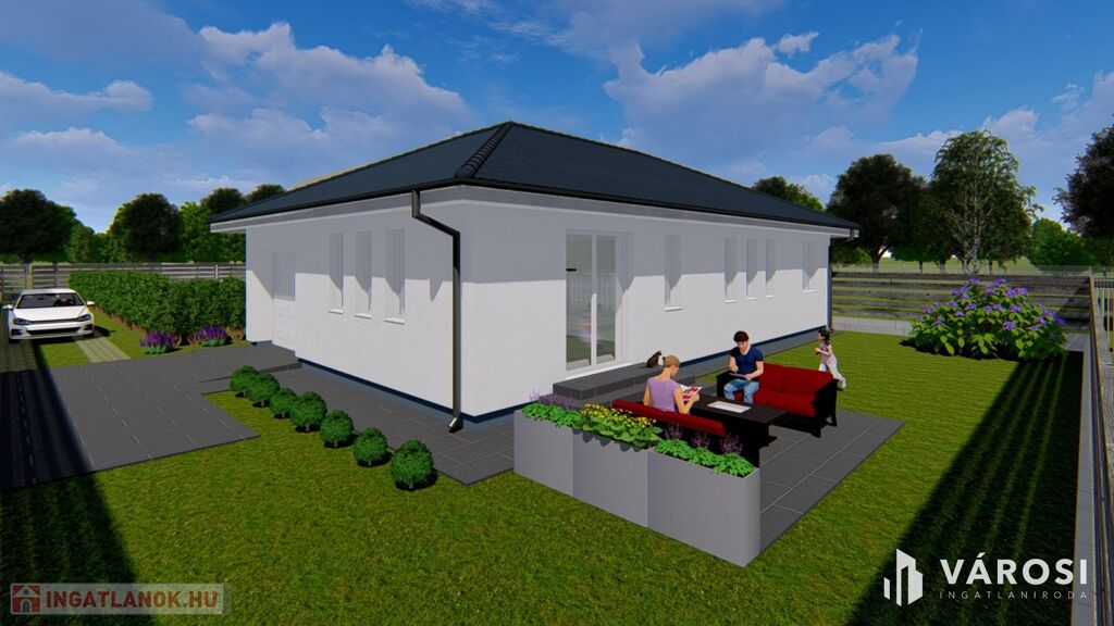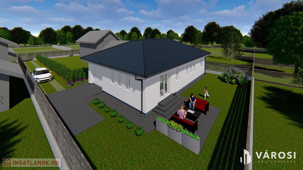 Ez a 100 m²-es,korszerű kulcsrakész állapotban átadásra kerülő családi ház ideális választás mindazok számára, akik a nyugodt, zöld környezetet keresik, de nem szeretnének lemondani a belváros közelségéről. Az ingatlan egy 455 m²-es telken helyezkedik el, amely tökéletes lehetőséget biztosít szabadtéri kikapcsolódásra is. Az ingatlan bejárata 3,20 m széles, 25 m hosszúságú bejárón keresztül közelíthető meg, ez által még az utca zajától is mentes.