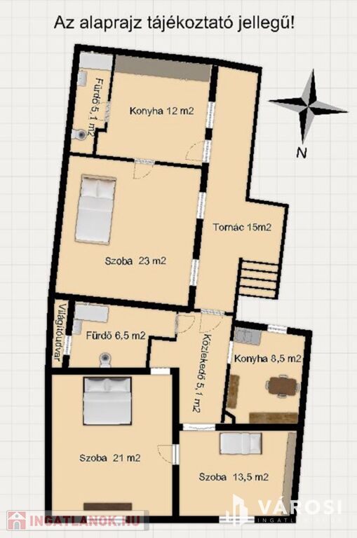 • A két lakás közös, 15 m²-es tornácról nyílik