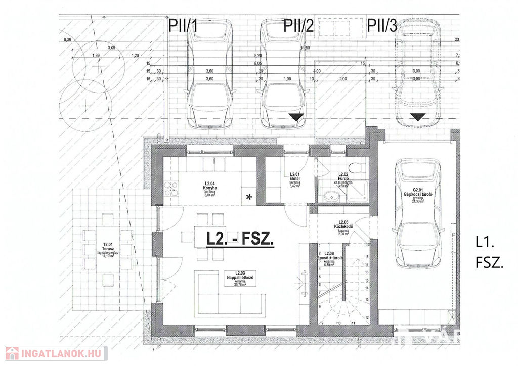 Telek méret 295 m2, melyből 145 m2 parkosítható zöldterület.
