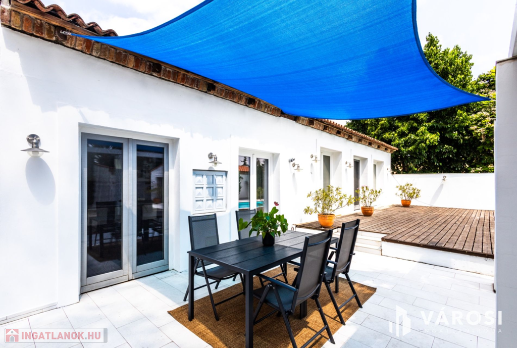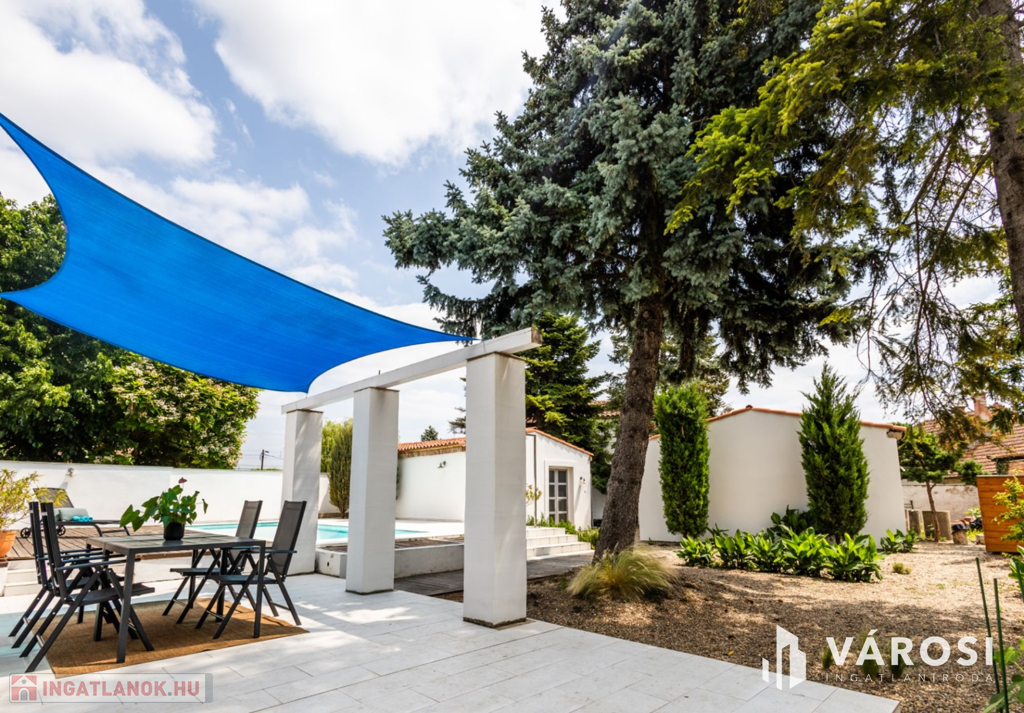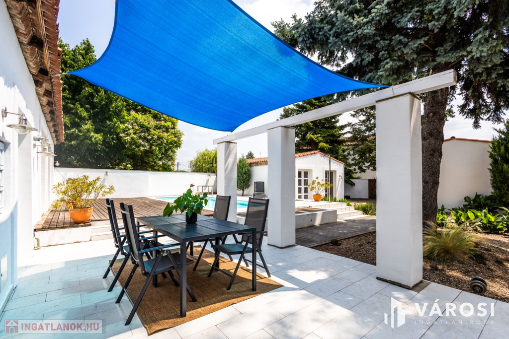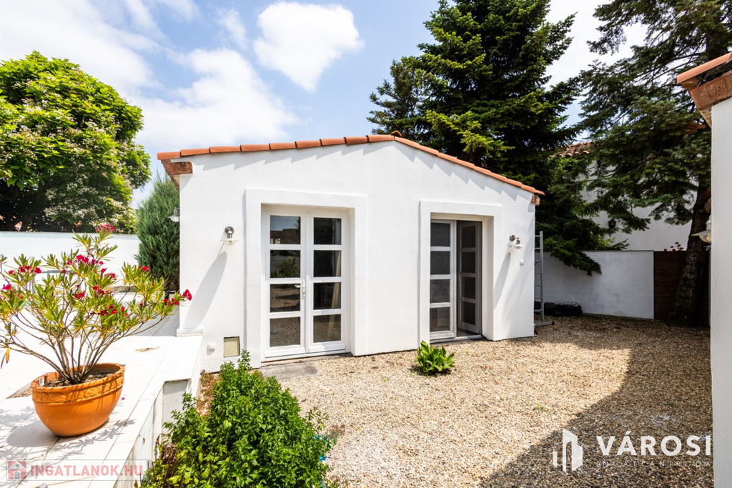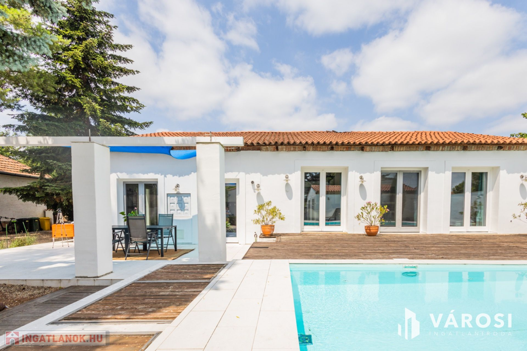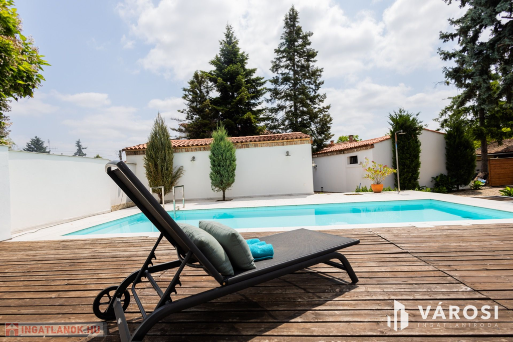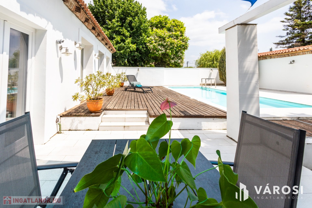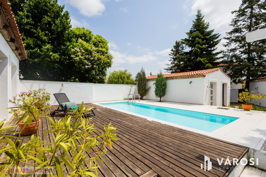 A kertben egy 3x 8 m alapterületű sósvizű medence is helyet kapott, mely tovább fokozza a mediterrán hangulatot. Emellett két melléképület is megtalálható a telken, melyek összközművesek, így tökéletesen alkalmasak lehetnek garázs, tároló, de akár iroda, vagy apartmanoztatási célra is, ennek eldöntése már az új tulajdonosra vár.