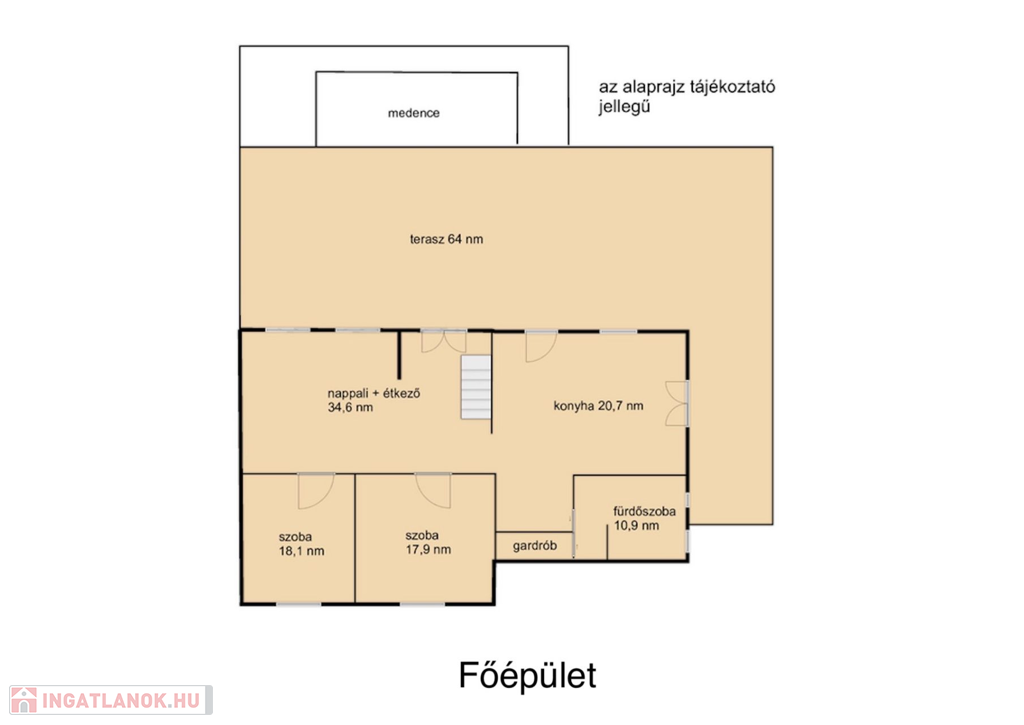 Az ingatlan egy csendes utcában, a Várfürdő közelében található. A főépület alapterülete 106 nm, melyben 2 tágas szoba mellett egy étkezős nappali, látványos rusztikus konyha és tusolóval és káddal is felszerelt fürdőszoba is helyet kapott. A telek alapterülete 755 nm, melyben számos dísznövény, és parkosított udvar mellett egy nagy méretű, sósvizű medence is megtalálható. A ház beton lábazatra épült, tégla falazattal. 2020-ig folyamatosan újítva lett, melynek keretében megtörtént: