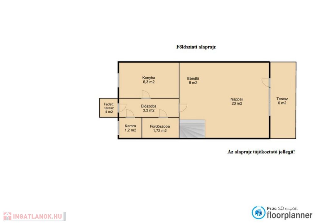Fedett terasz területe: 10 m2.