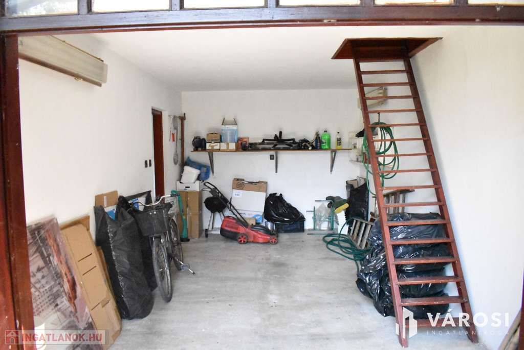 A kert végén egy padlásteres, tágas garázs és két melléképület is ki lett alakítva.
