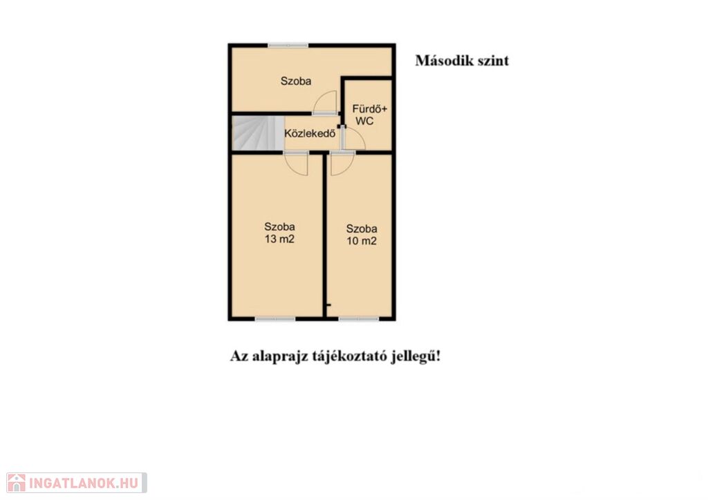 A felső szinten hálószoba, dolgozószoba és gyermekszoba valamint fürdő+WC helyezkedik el.