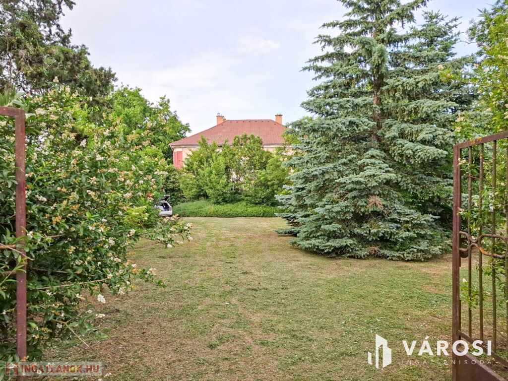 Az ingatlan területén erdős környezetben számtalan zöld növényzet, ős fák, örökzöld található, a telek körbekerített, 2 autó bejáró és 1 személyi bejáró is biztosított.
