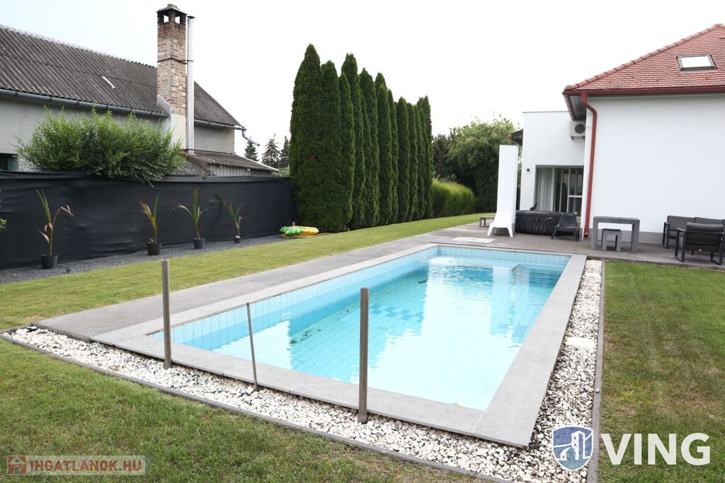 Szegedtől 10 percre, Hódmezővásárhely kedvelt Új- Kishomoki részén eladó, 2007-ben épült 140 m²-es kétszintes 3 szobás családi ház, medencével, parkosított udvarral.