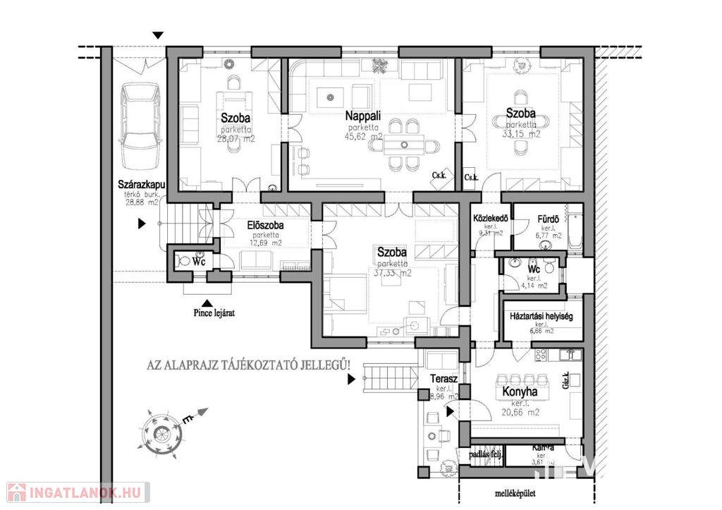 - Szobák: ~37,00 m2, ~33,00 m2, ~28,00 m2,