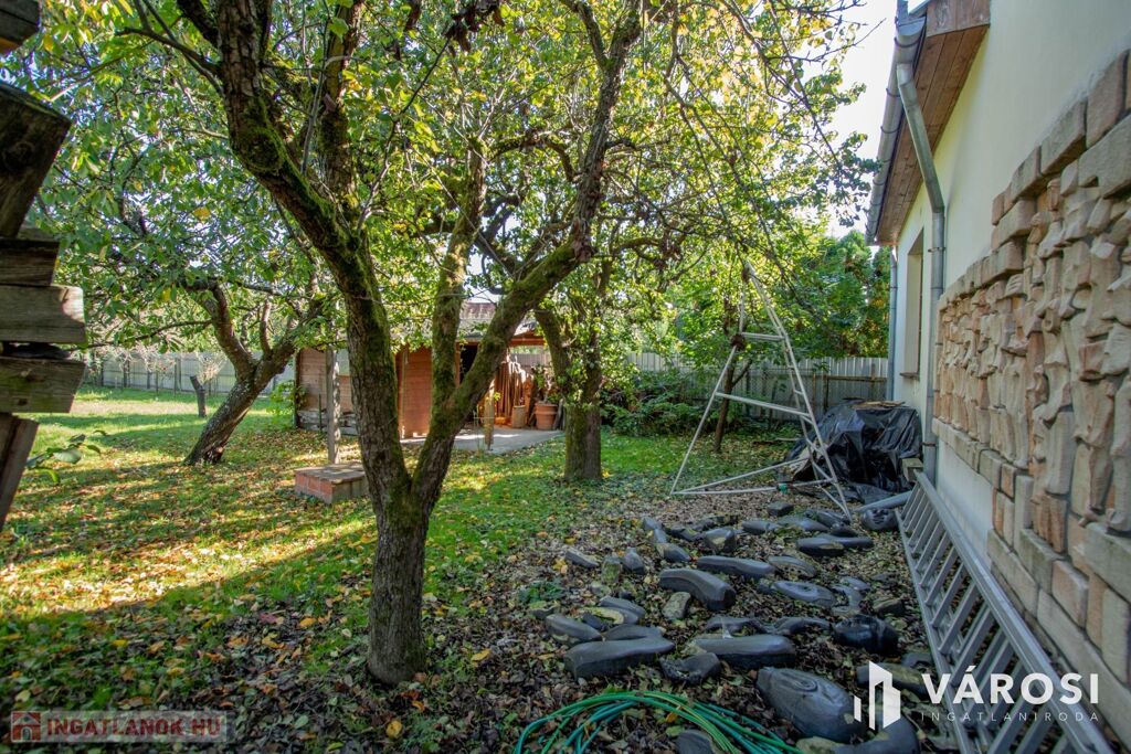 Az udvara parkosított, egy kerti kis tó is található benne, ami egy kis törődésre vár, de nagyon hangulatos hatást kelt így is. Tárolásra egy hangulatos kis faház lett felépítve.