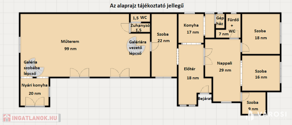 Az ingatlan remek választás olyan embernek, akinek szüksége van alkotói térre vagy a munkája miatt hasznosítani tudja a közel 120 nm nagyságú művészi részét a háznak, de akár befektetési célra is kiváló választás. A ház lakrésze 140 nm hasznos alapterületű, itt akár 4 szoba, 1 nappali, 1 előtér + étkező, 1 konyha és 1 fürdő+ WC található, jelenleg ez is egyedi stílusba van berendezve, de az elosztása adott, abból könnyedén kialakítható egy nagyobb család számára praktikus lakrész.