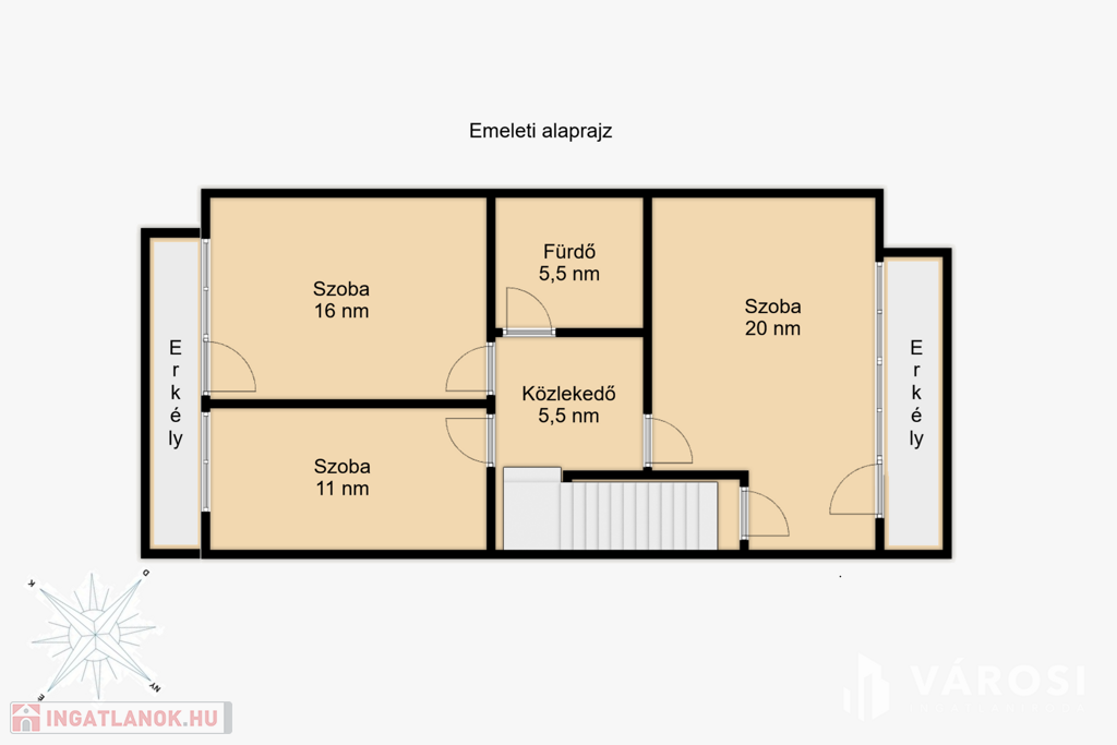 • Tágas terek: Nappali + 4 különnyíló szoba biztosítja a család minden tagjának a magánszférát.