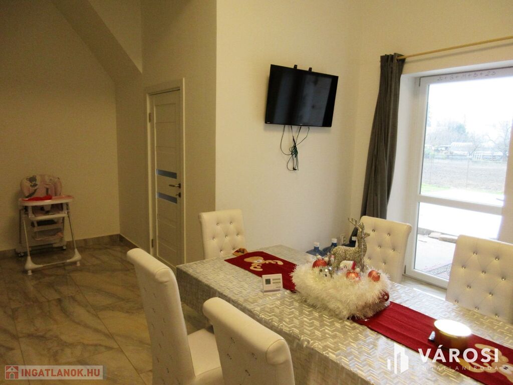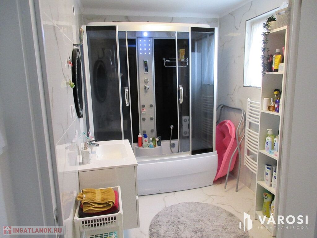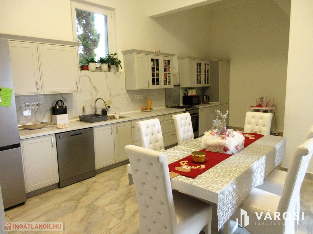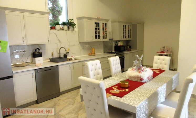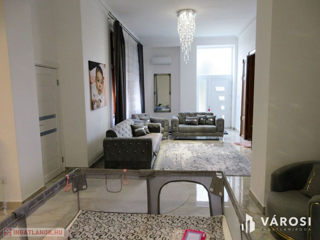 Makón kínálom eladásra ezt a gyönyörűen felújított polgári házat. 2022-ben a belseje teljesen fel lett újítva: a villanyvezeték újrahúzva, fűtésrendszer gáz-cirkó, melyhez minden helységben padlófűtés került kialakításra. Újak a burkolatok is, a tető is szigetelve van. A helységek hatalmasak: a nappali 60 (!!!) négyzetméter, a két egyforma nagyságú hálószoba egyenként 29 nm. A konyha/étkező 28 nm. Ezen kívül egy 5,6 nm-es zuhanyzó és egy 2,7 nm-es mosókonyha is a ház része. A nyári pihenést az étkezőből nyíló 28 nm-es terasz vagy a nappaliban a ház klímaberendezése biztosítja. A zuhanyzó is teljes felújítást kapott, egy gyönyörű vízsugár masszázs zuhanykabin lett beépítve. Minden a lehető legnagyobb igénnyel lett kialakítva.