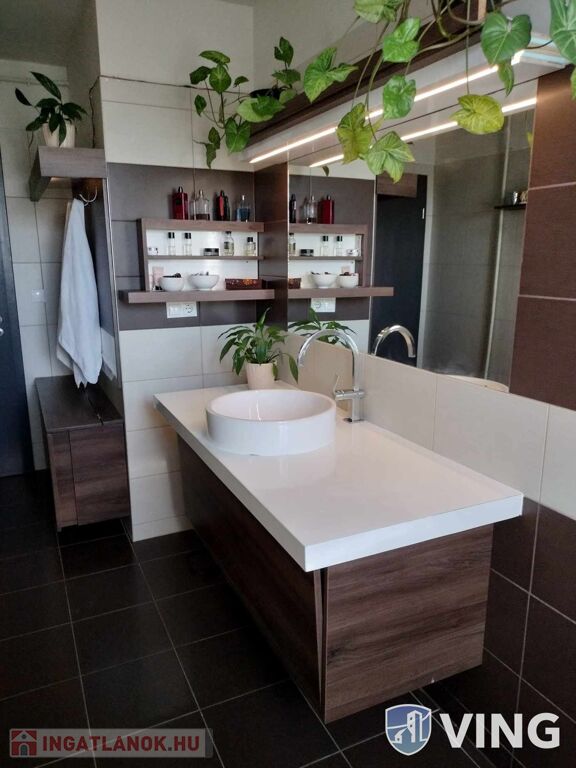 Az ingatlan a város egyik legjobb lakóparkjában található. A belső tér kialakítása, a burkolatok, a felhasznált anyagok, a dekorvilágítás mind azt az érzetet erősítik, hogy aki itt lakik, az igényes és nem a tucat megoldások híve.