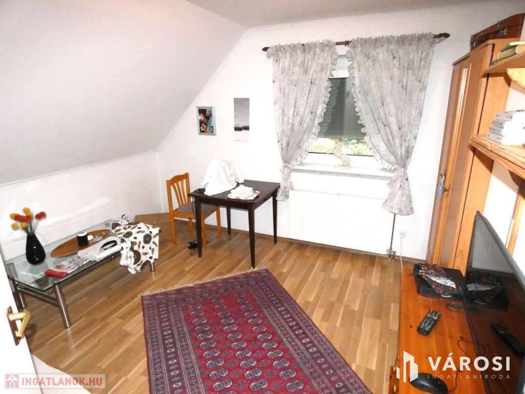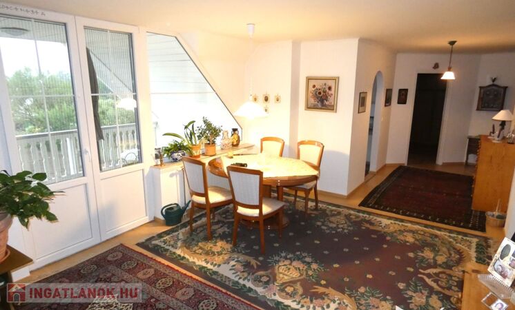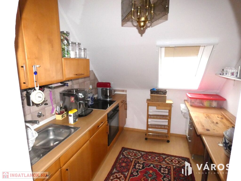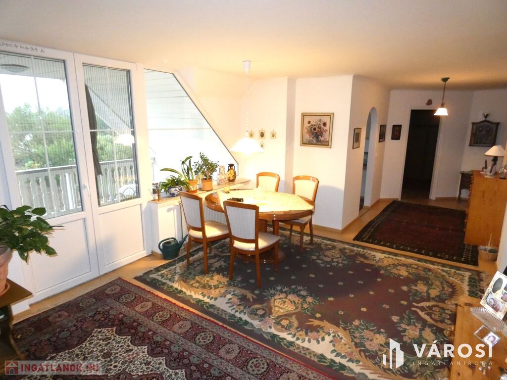 • Tetőtér: Tágas nappali, négy szoba, fürdőszoba, konyha, 12 m²-es erkély gyönyörű kilátással a Szent György-hegyre.