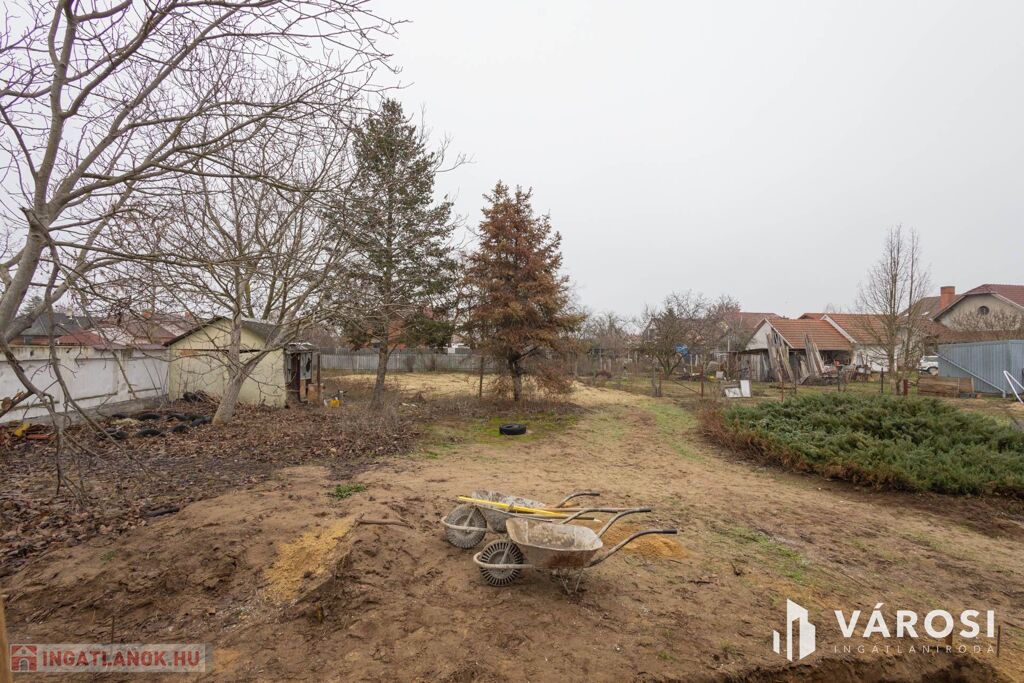 Az 1078 m²-es telek rengeteg zöld területet kínál, tökéletes helyszín lehet családi összejövetelek vagy konyhakert kialakítására is.