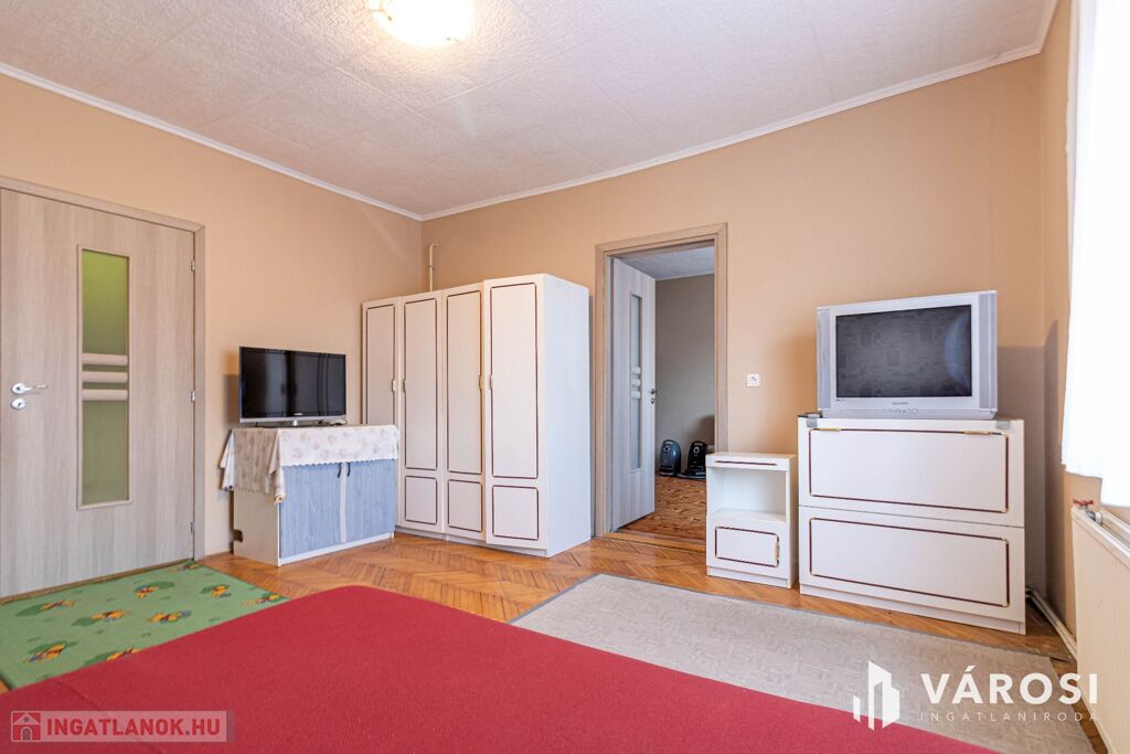 Hasznos alapterülete 138 m², amely a következő helyiségekből áll: 3+2 szoba, folyosó, konyha (felújított konyhabútorral), külön étkező, fürdőszoba WC-vel, kazánház, kamra, tároló.