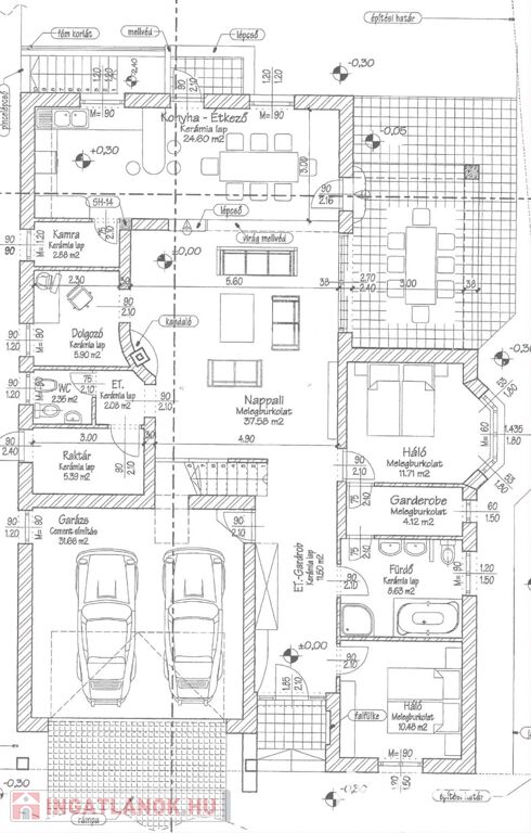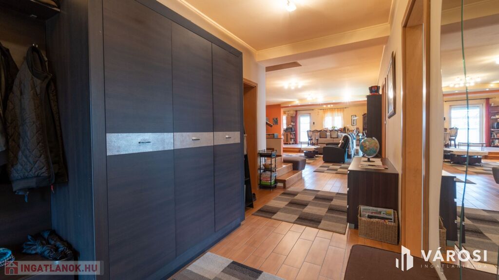 Extrák: 2 db hűtő-fűtő klíma, távfelügyeletre bekötött riasztó, Marantech távvezérelt kapu- és garázsrendszer.