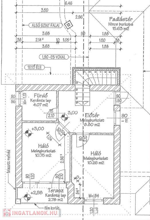 Hőleadás: Padlófűtés a hidegburkolatos helyiségekben, radiátorok a hálószobákban.