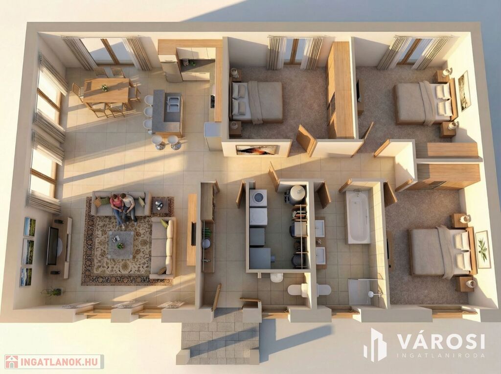 - 102 m2 nettó alapterület, nappali+3 hálószobás elrendezés