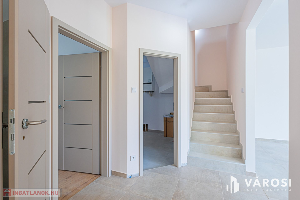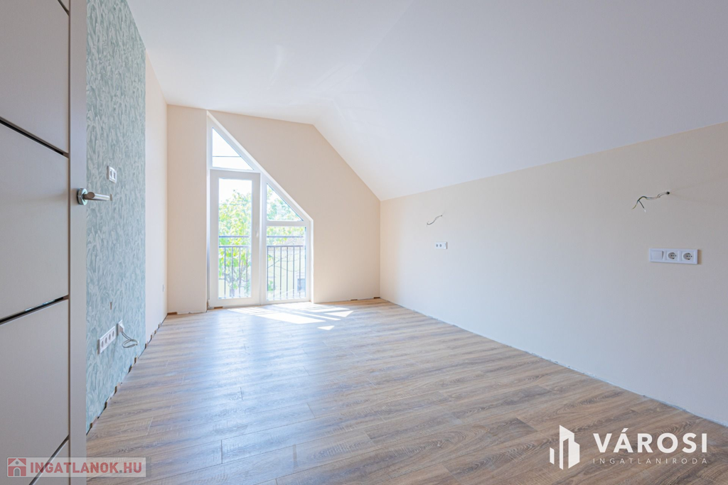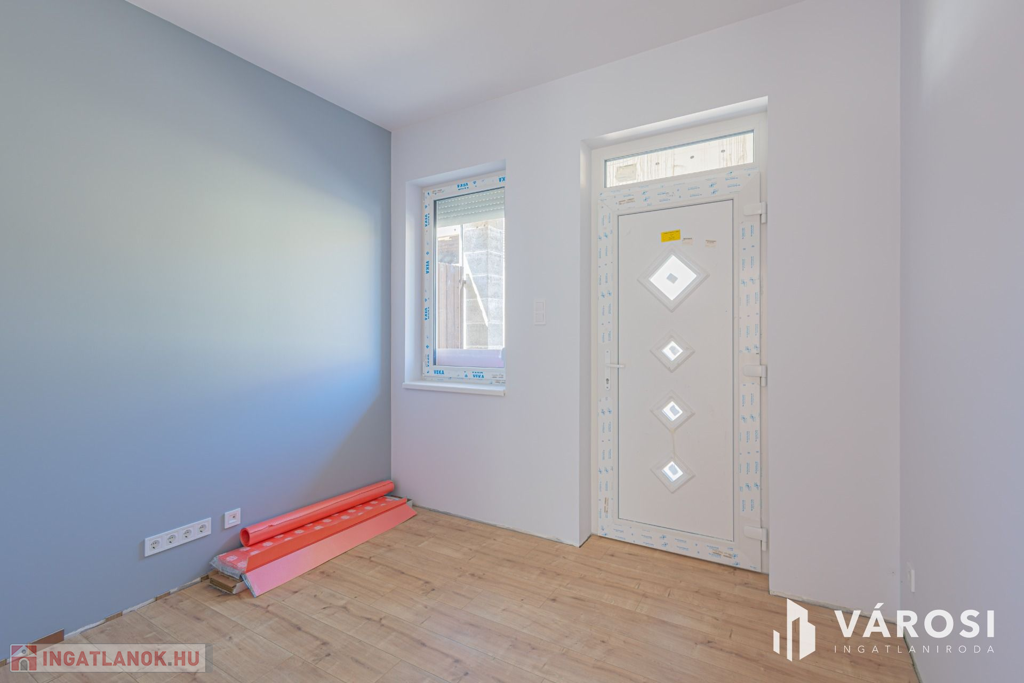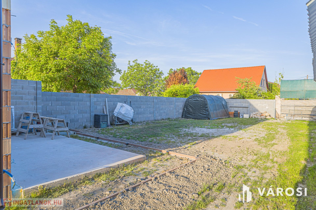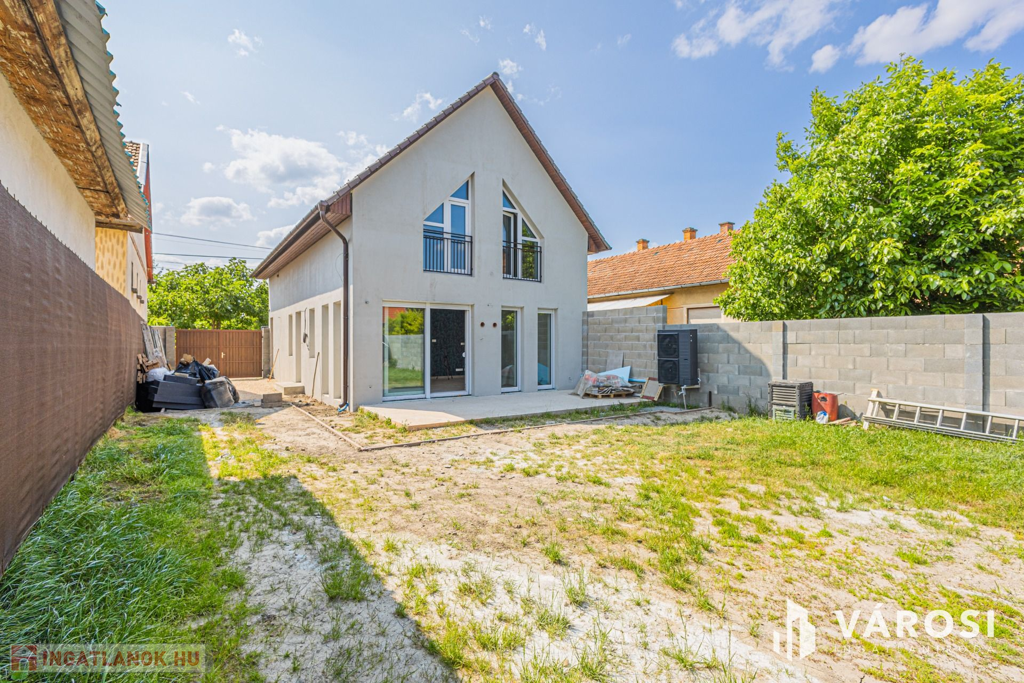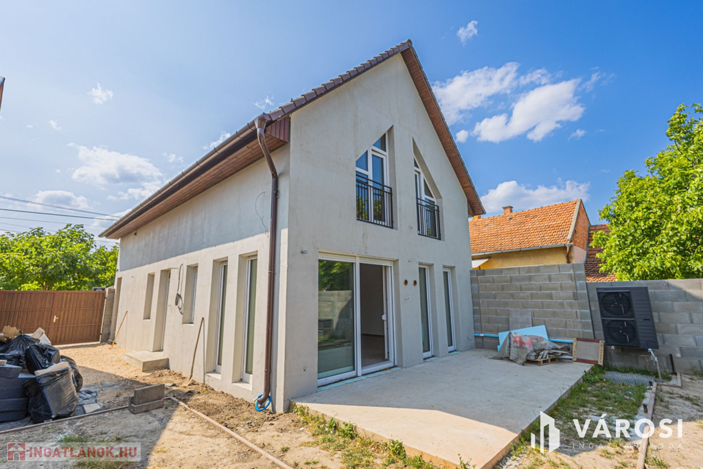 Szeged Kiskundorozsma városrészének csendes - ám központi - utcájában kínálom megvételre ezt a teljesen új építésű családi házat. A jelenlegi fiatal tulajdonosok 2024-ben maguknak vásárolták szerkezetkész állapotban, az ütemterveknek megfelelően haladnak a kulcsrakész befejezéssel, ami néhány héten belül várható. A lakótér cirka 140 négyzetméterén kiváló elosztásban egy amerikai konyhás nappalit és 4 külön hálószobát kapunk a mellékelt alaprajz szerinti elrendezésben. Az átgondolt és esztétikus megoldások az egész otthonra jellemzők. Rezsibiztos megoldásként a padlófűtés és melegvíz rendszert úgy alakították ki, hogy kondenzációs kazánról és hőszivattyúról is üzemelhet. A lakóteret a ház udvarával egy kellemes méretű terasz kapcsolja össze. Autóval garázsban és az udvarban is van lehetőség a parkolásra.
