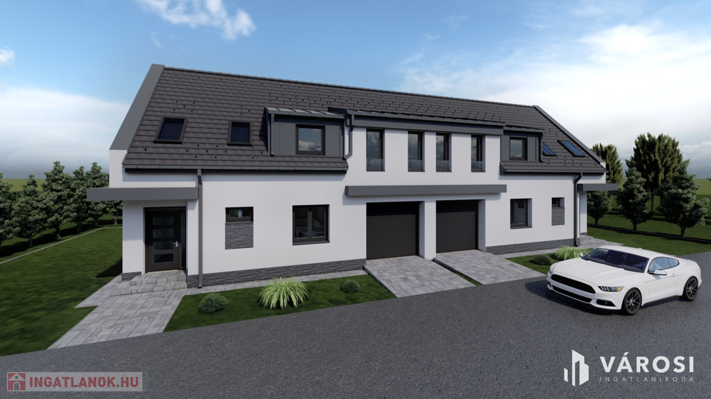 Szeged Újszeged városrészében, az Akácvirág lakóparkban, eladó egy új építésű, összesen 154 nm-es, téglából épült, nappali plusz négy szobás, belső szintes, dupla fürdős teraszos, garázsos ikerház, amelyhez összesen 324 nm es telek is jár hozzá.