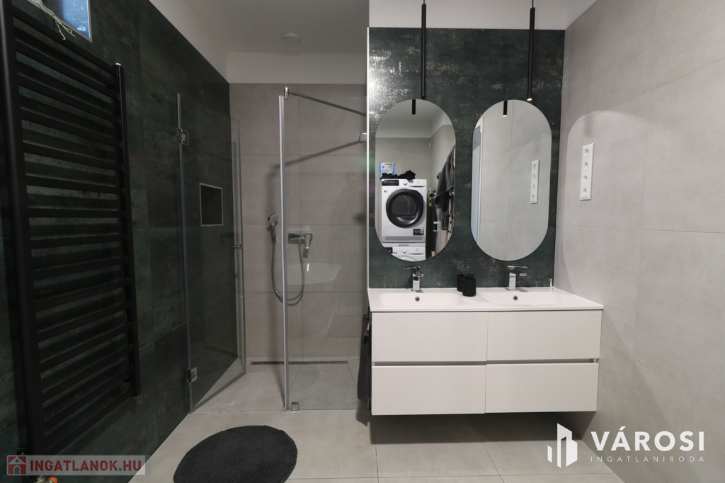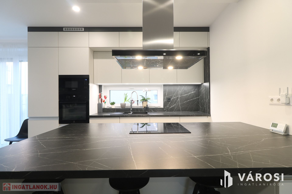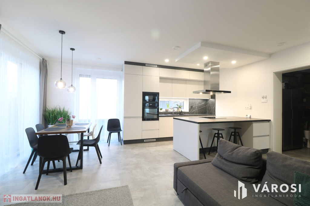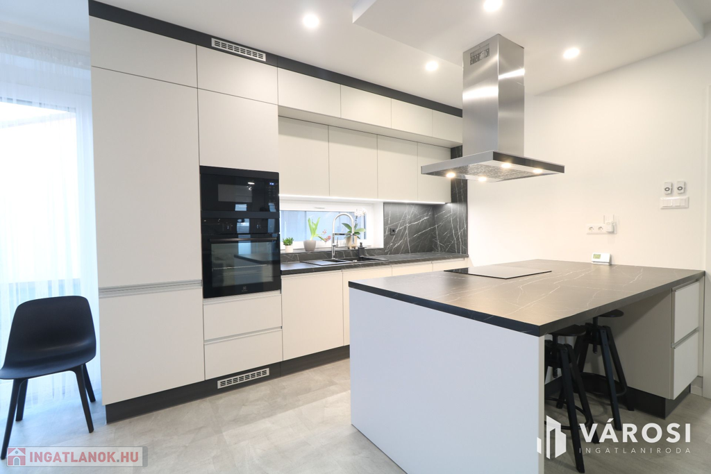 - Amerikai konyhás nappali,3. külön szoba,2. fürdőszoba, kamra, külön WC, fedett terasz