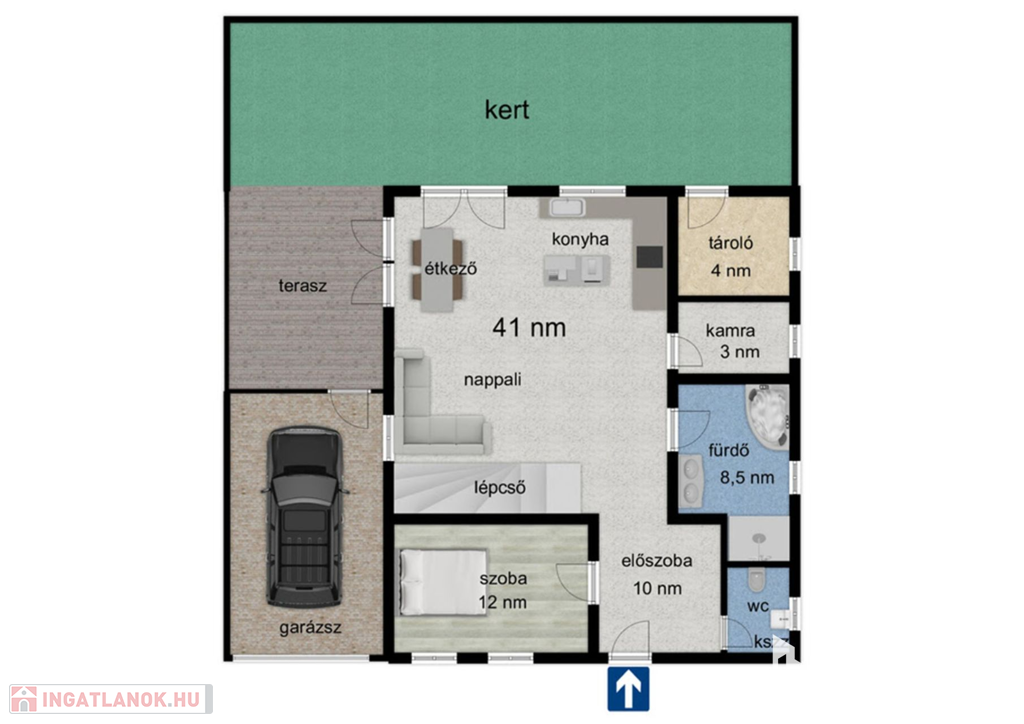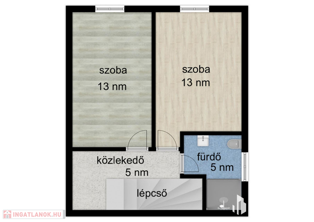 - Egy szoba és egy fürdő a földszinten helyezkedik el!