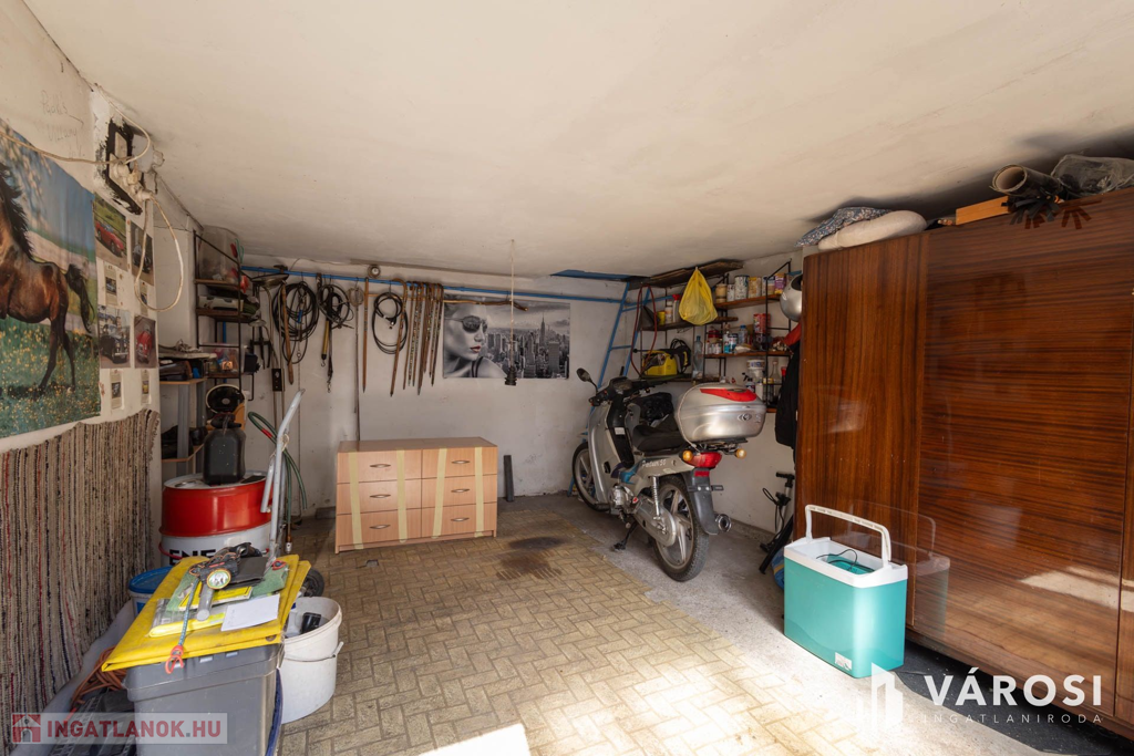 A három külön garázs jelenlegi mérete 57 m2, így akár autószerelőnek vagy bármilyen műhelynek alkalmas lehet.
