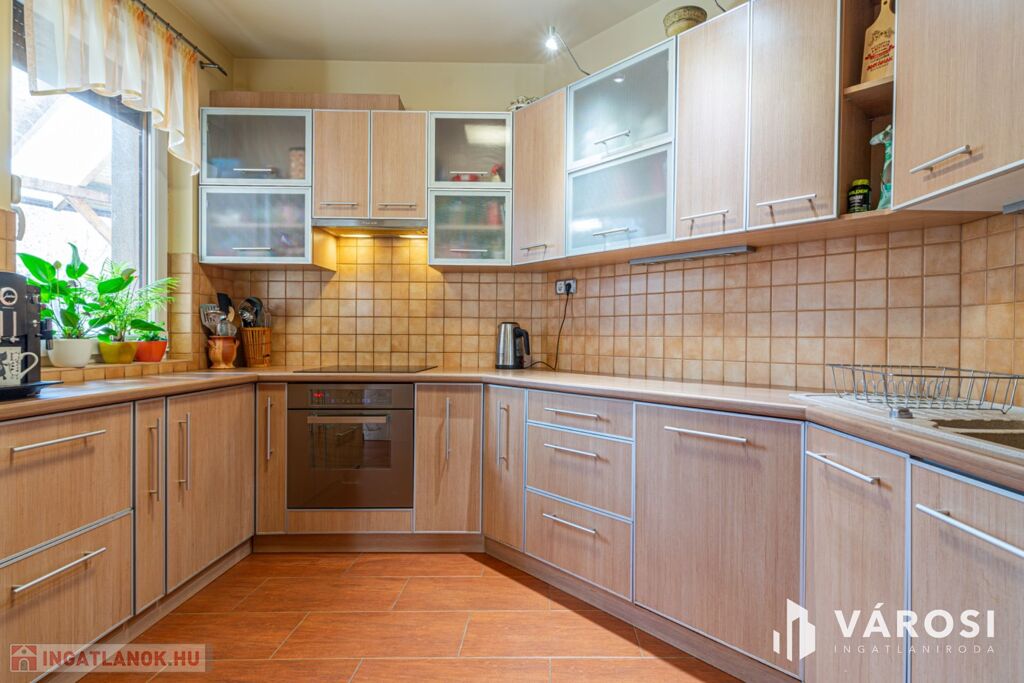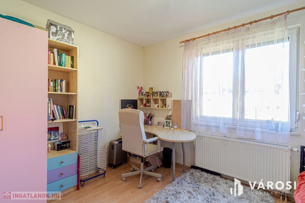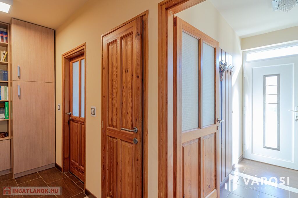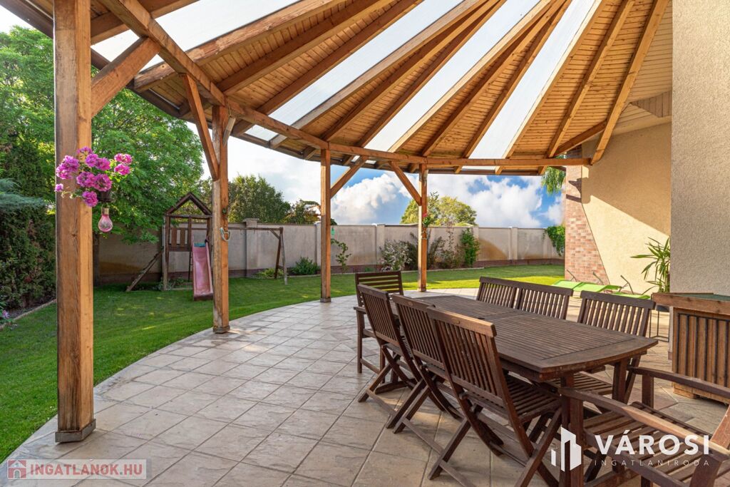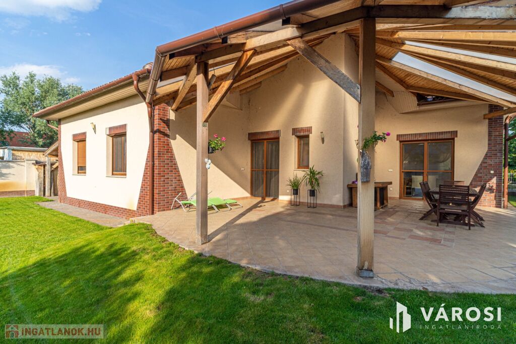 mind a nappaliból, mind a szülői hálóból megközelíthető. Az ingatlan gondozott előkerttel és