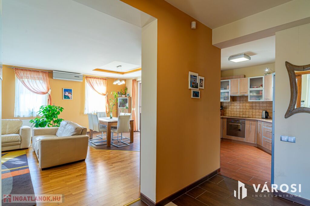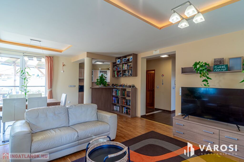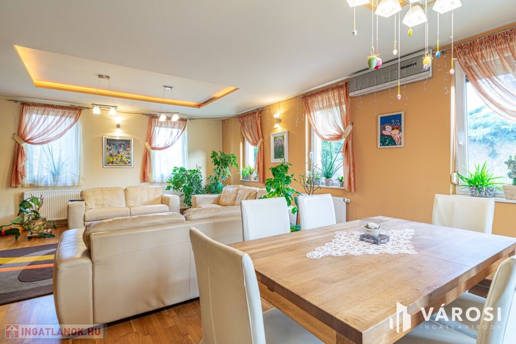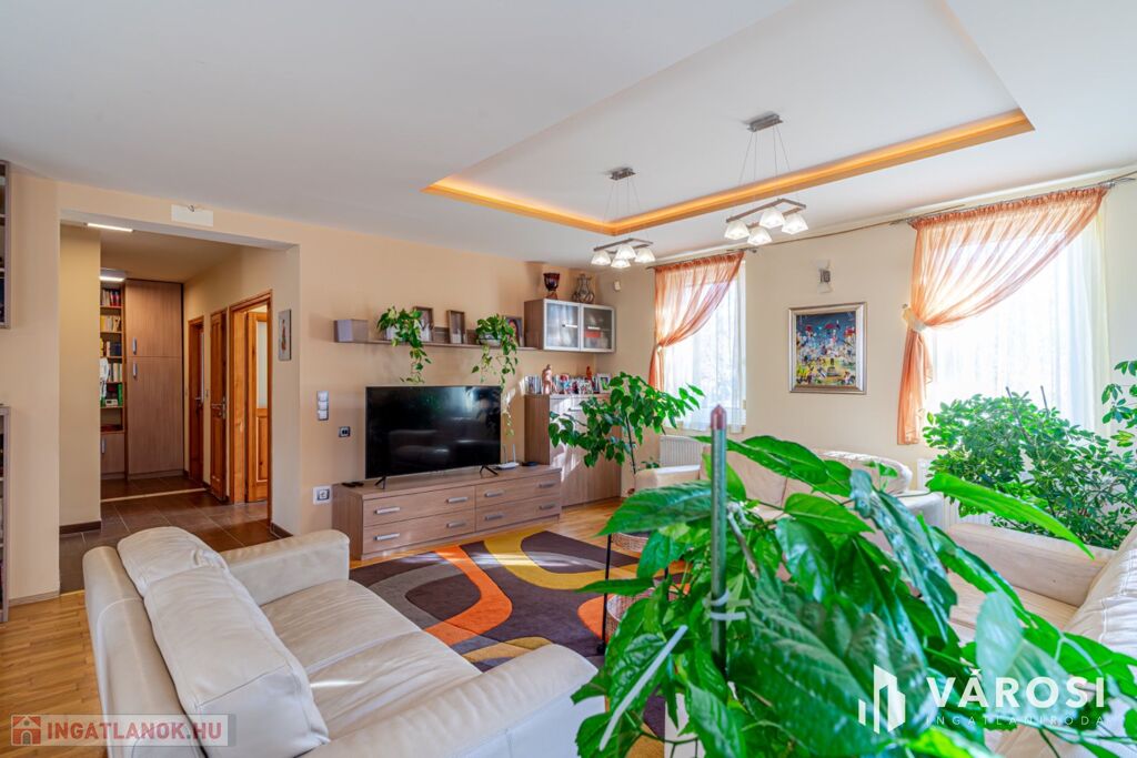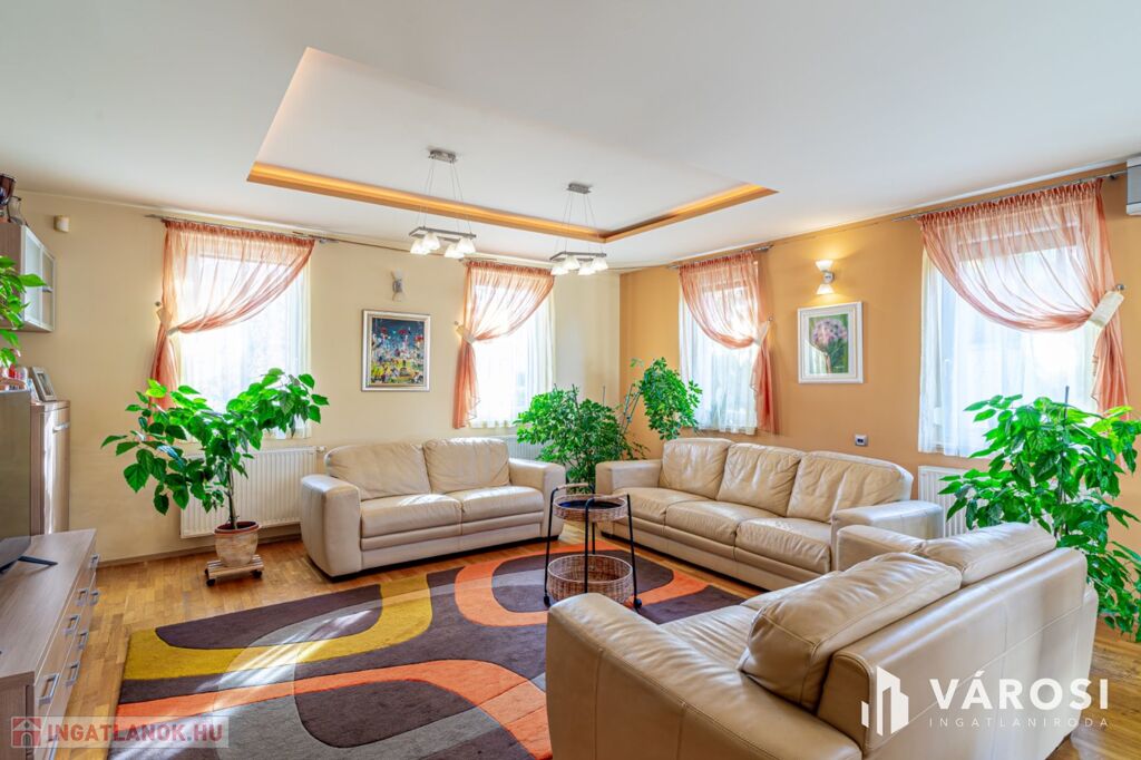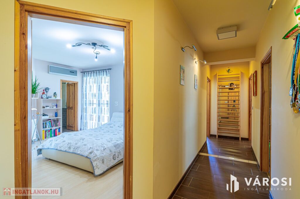 mind a nappaliból, mind a szülői hálóból megközelíthető. Az ingatlan gondozott előkerttel és